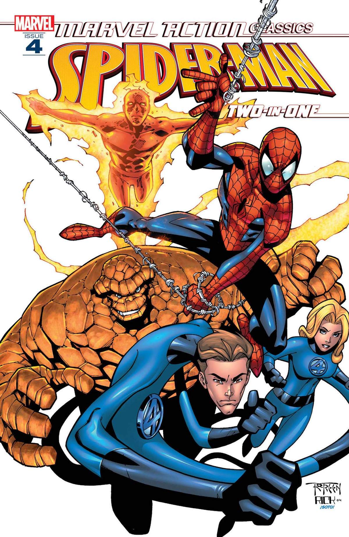 In this Marvel Classics Two-In-One, we follow Spidey on dual adventures with a quartet of super special guests! In "The Chameleon Strikes," Spider-Man goes to enlist in the Fantastic Four, mistakenly believing that they make a salary. Then, Spidey finds himself in hot water-and a head-on collision with action!