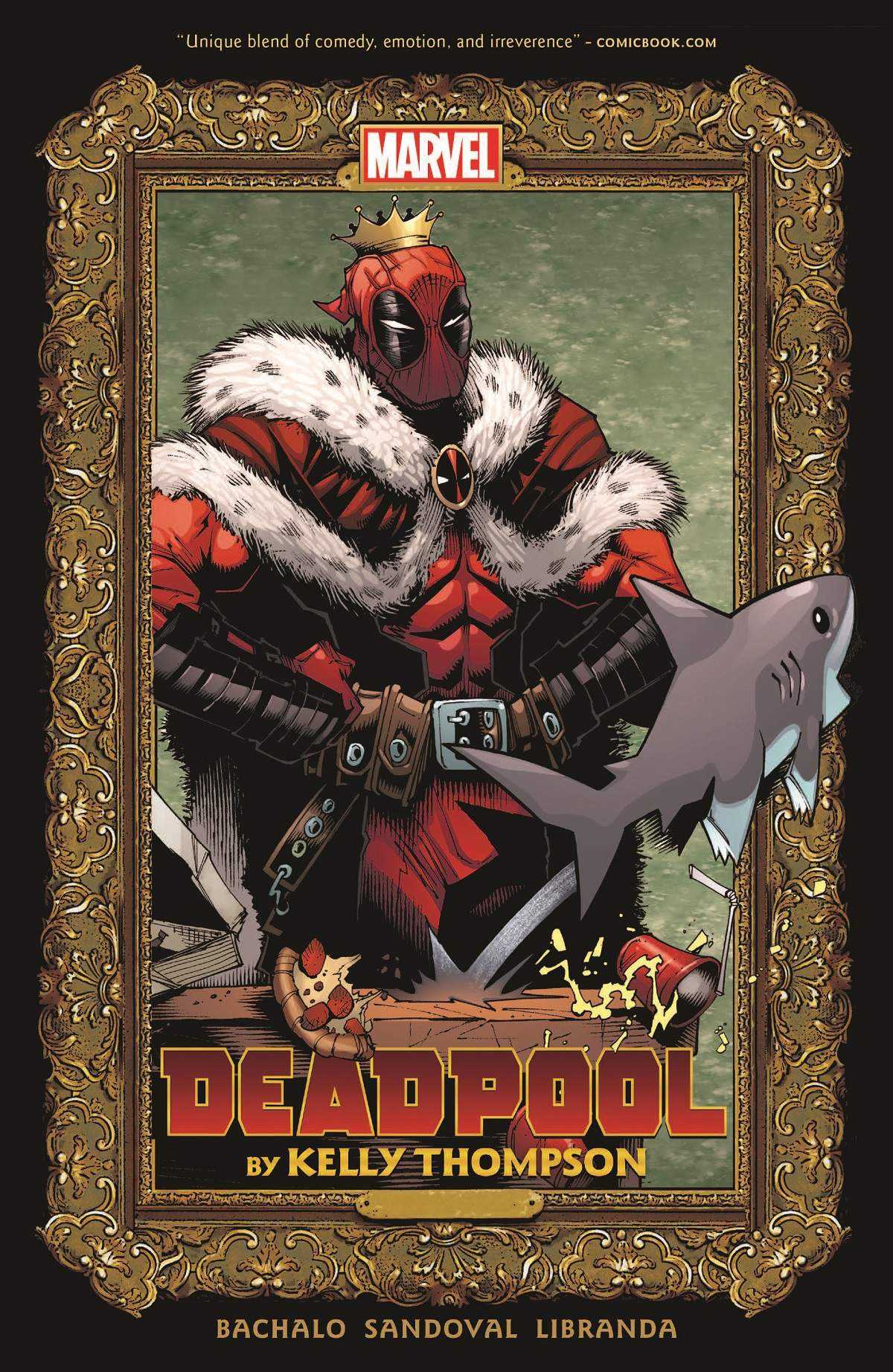 Collects Deadpool (2019) #1-10. Hail to the King! Deadpool's unlikeliest career change yet sees him dethrone the King of Monsters - and become the Merc with a Monarchy! His new kingdom? Staten Island - the place where monsters dwell! But his royal highness soon finds himself neck deep in political intrigue - and facing major obstacles including Captain America and the monster-hunting Elsa Bloodstone! Uneasy lies the head that wears a crown - and Wade will learn that lesson firsthand when Kraven the Hunter arrives with regicide on his mind! But when Elsa learns she's dying, why is Deadpool the only one who can save her? Learn the truth of the Bloodstone curse as action, adventure and a dimension full of hideous goo await! Plus: Wade invades the X-Men's island-nation of Krakoa - and King Deadpool takes on the King in Black!