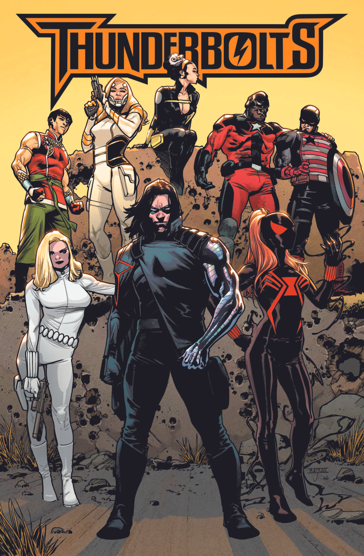 Collects Thunderbolts (2023) #1-4 And Devil's Reign: Winter Soldier. No one is safe from the Thunderbolts! Bucky Barnes - the former Winter Soldier now known as the Revolution - just inherited a mountain of covert intel, and he has one objective: justice, like lightning! He's going after the establishment, the people no one else is willing or able to take down, and he'll do whatever it takes to win. Teaming with the mysterious Contessa Valentina Allegra de Fontaine, Bucky assembles a team of black-ops heavy hitters - including the Black Widow, the White Widow and Shang-Chi - to pursue high-profile targets like the Red Skull, Kingpin and even Doctor Doom himself! But do even they have the firepower required to stop the American Kaiju from destroying Hong Kong? Plus: Learn the reason why Bucky made a powerful enemy in Wilson Fisk!