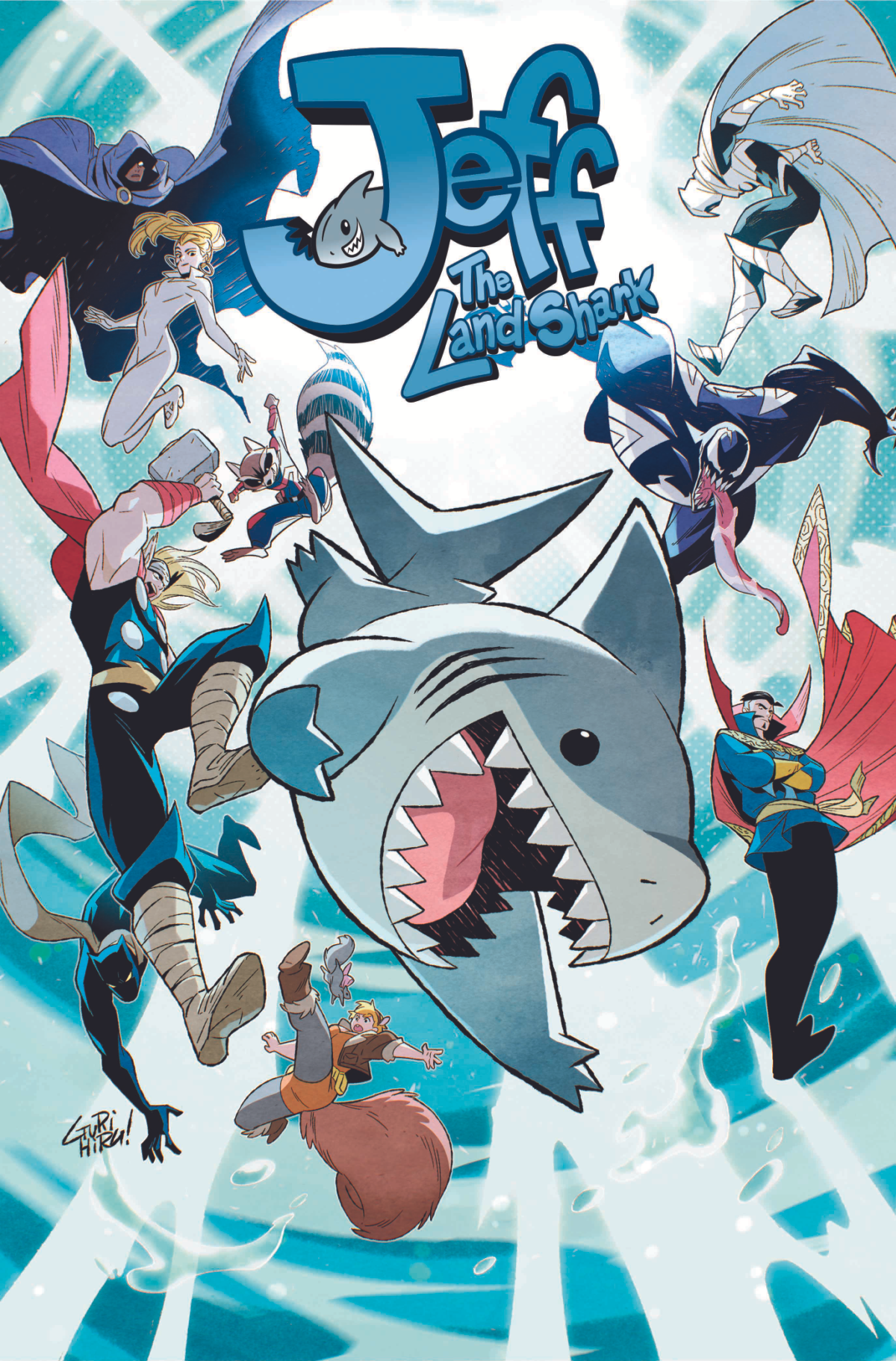 Hot off his star-making appearance in MARVEL RIVALS, everyone's favorite walking fish boy stars in his first series! Join Jeff the Land Shark as he teams up with many of the friends he's made over the years and outsmarts more than a few rivals along the way. And this time, he's got some all-new abilities on his side! But a malevolent force has been set upon the world - a being of pure darkness who wants nothing more than dismay and destruction. Beware the evil known as…Shadow Jeff! Plus: Our selachian sensation stalks the dangerous corridors of Madripoor alongside Wolverine and Psylocke! Jeff co-creator Kelly Thompson and artist Tokitokoro sharpen the teeth of the undeniable star of the entire Marvel Universe! Collecting JEFF THE LAND SHARK (2025) #1-5.