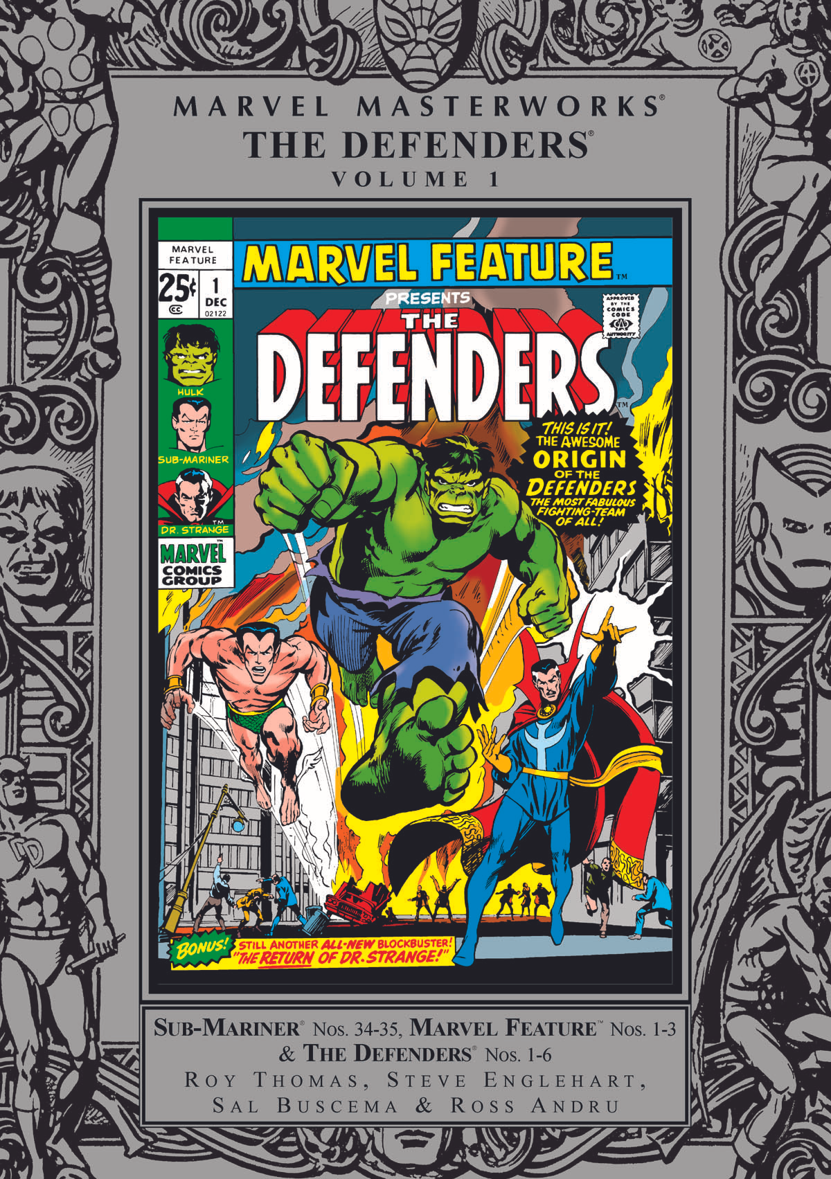 Leap into the adventures of the dynamic Defenders, comics' greatest non-team! Bonded in a mutual mission are the mightiest misfits in the Marvel U.: the Incredible Hulk, the Sub-Mariner and the Silver Surfer. But these warriors three don't rest on bylaws and butlers; they - along with the Master of the Mystic Arts, Dr. Strange, and the defiant Valkyrie - come together only in moments of utmost crisis. Facing enemies from across the incomprehensible divide, the Defenders square off against Dormammu; the Nameless One; the Enchantress; and a dark menace from Dr. Strange's past, the sorcerer Cyrus Black. It's not just baddies they do battle with, though. In a prelude to the epic Avengers/Defenders War, Hulk, Namor and the Silver Surfer go head-to-head with the mighty Avengers in a fight that pits hero against hero like none other! Collecting SUB-MARINER #34-35, MARVEL