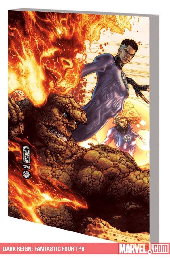 Dark Reign strikes Marvel's first family-in an explosive way! Prepared to be blown away as: HAMMER agents attack the Baxter Building. Reed changes everything. The Human Torch suffers a horrible loss and Franklin and Val go shopping. There's Time travel, Alternate realities, Celestials, Eternals, Deviants and Doombots... and more important than all of that, we find out the answer to the question: What is the Bridge? Collecting DARK REIGN: FANTASTIC FOUR #1-5.