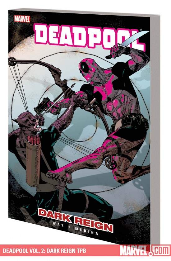 Some jobs are just too tough for your average, fast-talking high-tech gun-for-hire. Sometimes - to get the job done right - you need someone crazier than a sack'a ferrets. You need Wade Wilson - the Crimson Comedian, the Regeneratin' Degenerate, the Merc with a Mouth...Deadpool! And when Nick Fury needed someone to infiltrate the invading Skrull armada to retrieve vital information, he called in Deadpool - and Deadpool took care of business. But to Wade's surprise, the data he swiped was stolen in transit by Norman Osborn, who used it to kill the Skrull queen and win the gratitude of everyone on Earth. But Deadpool isn't interested in gratitude. He's interested in big, fat paychecks. And since Norman now owes him one, Deadpool's on his way to collect. But since his rise to power, Norman's a hard man to reach. He's the head of H.A.M.M.E.R. and the new Dark Avengers. He's too busy trying to take over the world to deal with Deadpool personally, so he sends the ruthless killer Bullseye to handle his problem for him! Collecting DEADPOOL #6-7 and #10-12.