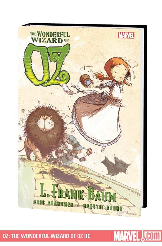 The premiere American fantasy adventure gets the Merry Marvel treatment! Eisner Award-winning writer/artist Eric Shanower (Age of Bronze) teams up with fan-favorite artist Skottie Young (New X-Men) to bring L. Frank Baum's beloved classic to life! When Kansas farm girl Dorothy flies away to the magical Land of Oz, she fatally flattens a Wicked Witch, liberates a living Scarecrow and is hailed by the Munchkin people as a great sorceress...but all she really wants to know is: how does she get home? Collecting THE WONDERFUL WIZARD OF OZ #1-8.
