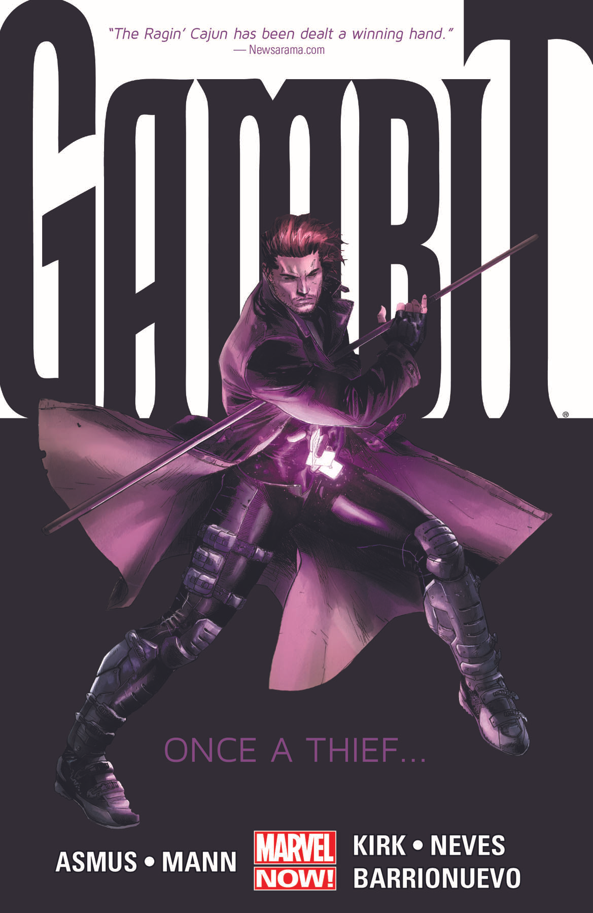 When Marvel's premiere thief sets his sights on his biggest score yet, he may just end up in over his head. Desperately seeking a means to destroy the pilfered artifact that's cursed him, Gambit journeys deep into the Guatemalan jungles in search of a lost temple - but finds an ancient god-monster accidentally loosed on Earth! It's going to take more than just playing cards and southern charm to get out of this one! Then, coerced by a criminal mastermind, Gambit is sent to the United Kingdom to heist the greatest weapon in the history of man: Excalibur! Can the ragin' Cajun dupe his extortionist while also escaping with a clear name? Or will Pete Wisdom and MI13 find him first? Collecting GAMBIT (2012) #1-7.