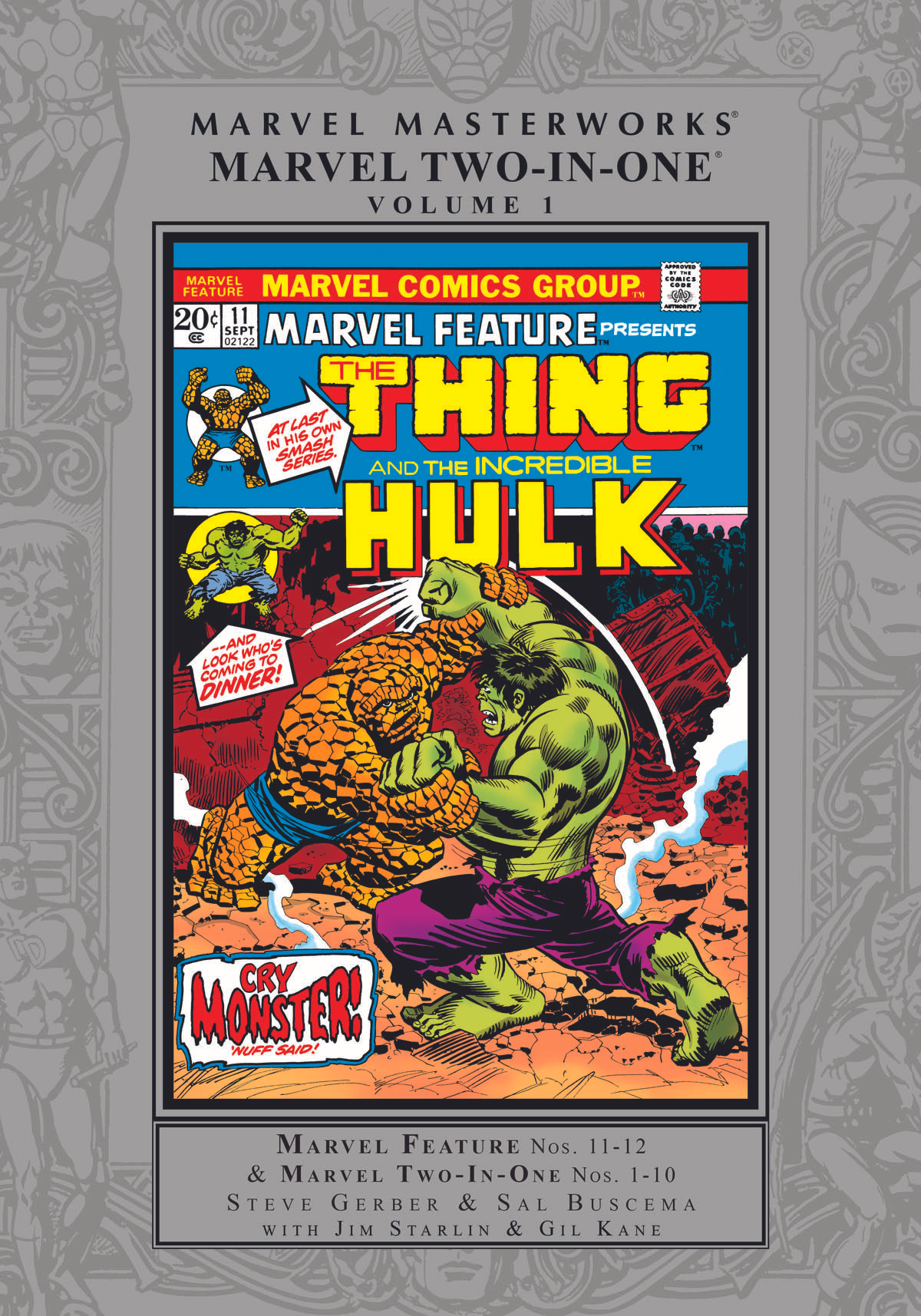 Two hundred volumes long and still going strong, the MARVEL MASTERWORKS celebrate Vol. 200 with the launch of Marvel Two-In-One! Yes, the ever lovin', blue-eyed Thing's own series collected is between hard covers at last! Begun as a MARVEL FEATURE tryout, Ben Grimm's headlining effort kicked off with Hulk and Iron Man battles (not to mention Thanos and the Blood Brothers), and then shifted into high gear with monster vs. monster - yup, it's Thing vs. Man-Thing! Rounding out the first ten issues are the revival of the Guardians of the Galaxy; revelations in the life of the Valkyrie; and adventures with Daredevil, Sub-Mariner, Ghost Rider, Thor and Black Widow - and before you know it, you'll be clamoring for more! Ya ain't a Yancy Streeter, are ya? Collecting MARVEL FEATURE (1971) #11-12 and MARVEL TWO-IN-ONE (1974) #1-10.