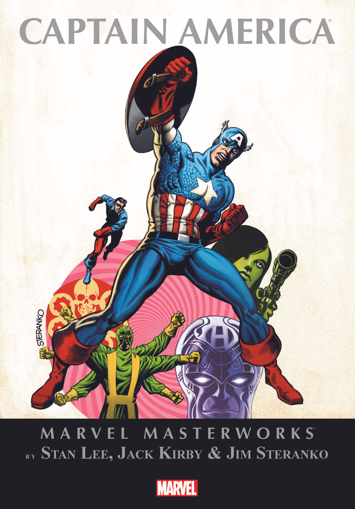 The MARVEL MASTERWORKS proudly unfurl one of the greatest runs in Marvel history: Stan Lee, Jack Kirby and Jim Steranko's CAPTAIN AMERICA! We begin with the Red Skull in a plot that forces Cap to do his nemesis' bidding or risk America's nuclear annihilation! Its Kirby action at its best with Batroc the Leaper and the Trapster, and Lee drama at its deepest as Cap relives his first meeting with - and the death of - Bucky Barnes. Last, but most certainly not least, comes Jim Steranko! The master of the medium will take you on a ride like none other with Cap vs. the Hulk, the return of Bucky and...the death of Captain America! Collecting CAPTAIN AMERICA (1968) #101-113.