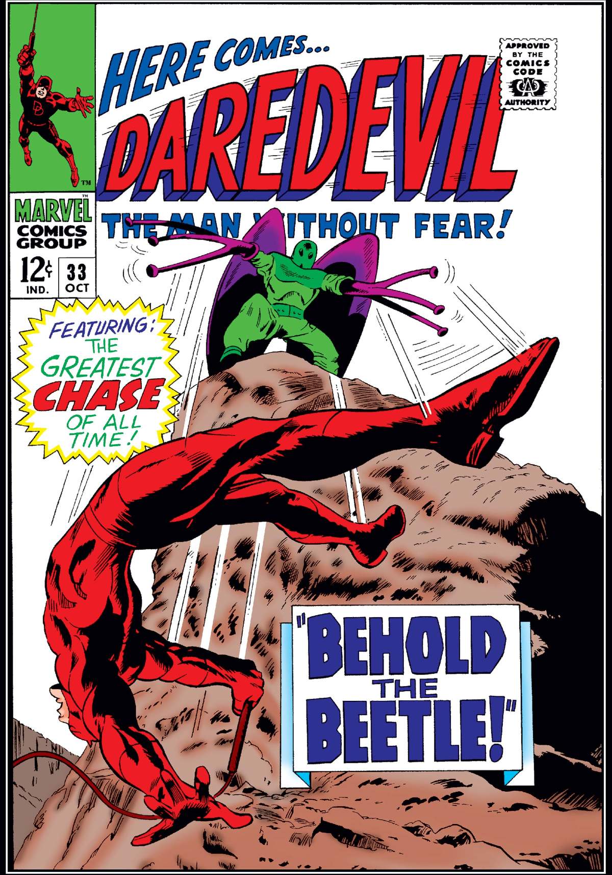Collects Daredevil (1964) #33-41, Fantastic Four (1961) #73. It's an identity crisis for Daredevil as Matt Murdock juggles a bevy of baddies seeking to sully his good name while he juggles the triple-identity of Matt Murdock, Mike Murdock, and DD! After a dust-up with the Beetle, the Trapster attempts to trick the Fantastic Four into attacking DD by disguising himself as none other than ol' hornhead himself! Wiser minds prevail, but only until none other than Dr. Doom steps up to the plate! In one of Daredevil's most amazing Silver Age adventures, he goes toe-to-toe with Doc Doom-in opposite toes! You guessed it, the Latverian monarch switches bodies with Daredevil bringing on a battle that drags the Fantastic Four, Spider-Man, Thor into the mix in one of Marvel's first crossover bonanzas! As if kicking him out of his own body wasn't enough, next the Exterminator tries to evict Daredevil from the time stream! With the Unholy Three at his employ to clobber the hornhead back into the Stone Age, he's got a good chance of succeeding 'cause there's at least one cast member that won't be making it out of this adventure alive.