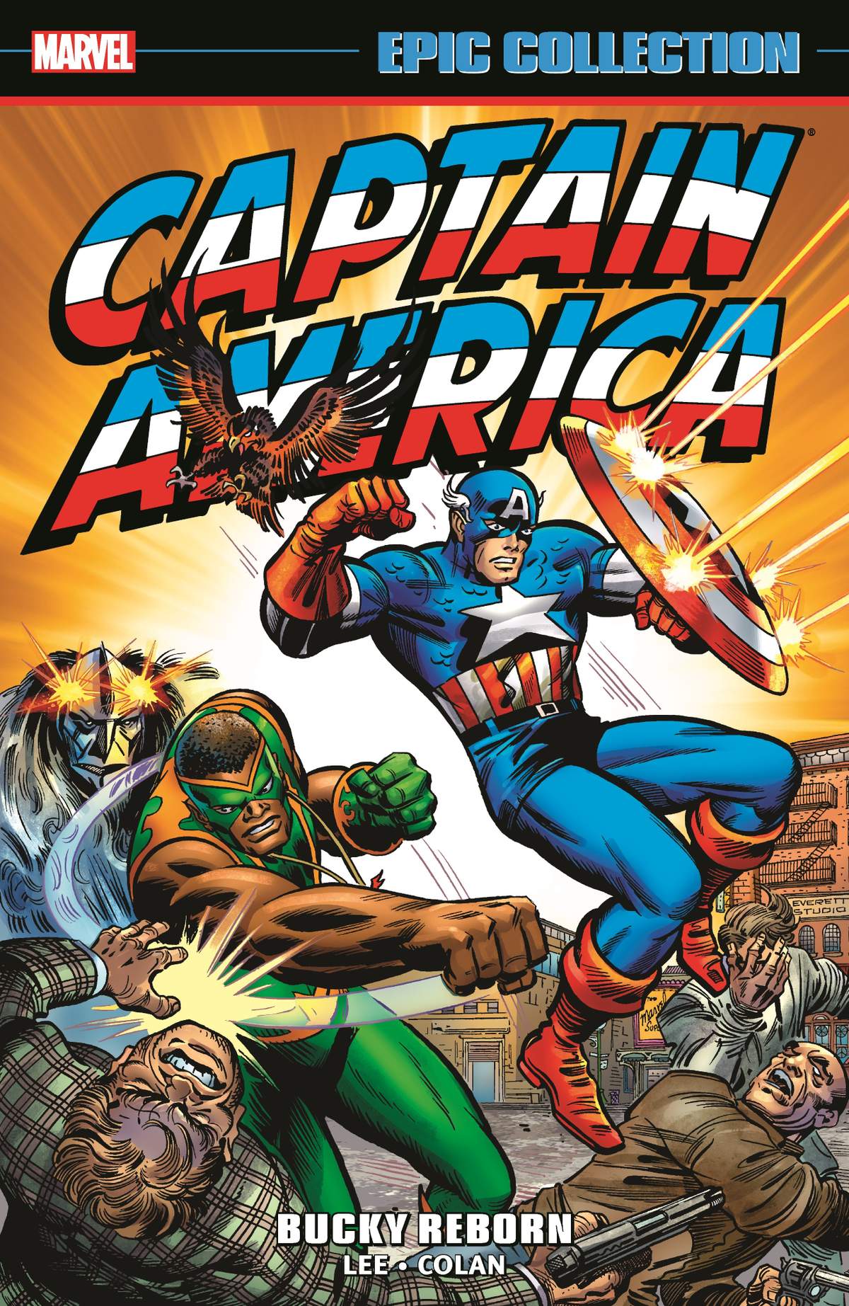 Draped in the red, white and blue, there's no character in all of comics who represents America like Cap - and his path through the tumultuous '70s reveals both the character's, and the nation's, soul. In story after story Stan Lee and Gene Colan push the envelope as Cap goes behind enemy lines in Vietnam, teams with the Falcon to oppose the radical Diamond Heads, and sets out on a coast-to-coast road trip full of motorcycle gangs, rock festivals and the Red Skull! Then, Bucky Barnes returns from the grave! But with Baron Strucker, Doctor Doom and M.O.D.O.K. tied up in his revival, this can't be the same pal that Cap remembers. What's really going on here? Plus: an unforgettable Captain America/Falcon/Spider-Man team-up! Collects Captain America (1968) #120-138.