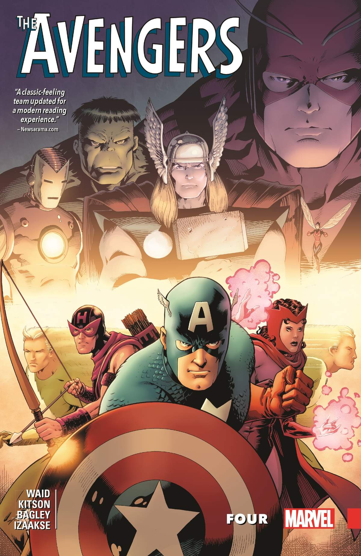 Collecting Avengers (2016) #1.1-5.1. The Old Order Changeth — more than you ever suspected! For the first time ever, learn what really happened all those years ago when the founding Avengers turned over their membership to a set of new recruits. Three reformed super villains — Hawkeye, Quicksilver and the Scarlet Witch — join the recently thawed Captain America as a new group of Earth’s Mightiest Heroes takes shape! But with his team labeled “The Mighty Pretenders” by an unforgiving public, how can Steve Rogers revive the Avengers’ reputation when they face an unbeatable foe? Perhaps he has an ace up his sleeve — one you’ve never seen before! It’s a new story of Cap’s Kooky Quartet (should that be Quintet?) that has direct ramifications for the Avengers of today!
