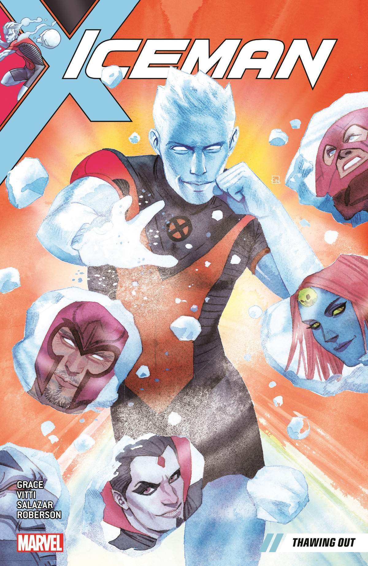 Collects: Iceman (2017) #1-5. Bobby Drake has been in the super-hero game longer than most — but what is he known for besides a few good one-liners and a string of failed relationships? The time is now or never for Bobby to build a life and legacy he can be proud of — and become the best Iceman he can be! But whether seeking ex-girlfriend Kitty Pryde’s advice on meeting guys or delivering his latest news to his parents, it won’t be easy — and that’s before a gang of revenge-seeking Purifiers comes calling! Still learning to be comfortable in his own skin, Bobby will meet someone who’s perhaps too comfortable in his: the Son of Wolverine himself, Daken! But when the moment of truth arrives, which is worse for Iceman: facing his parents — or the Juggernaut?