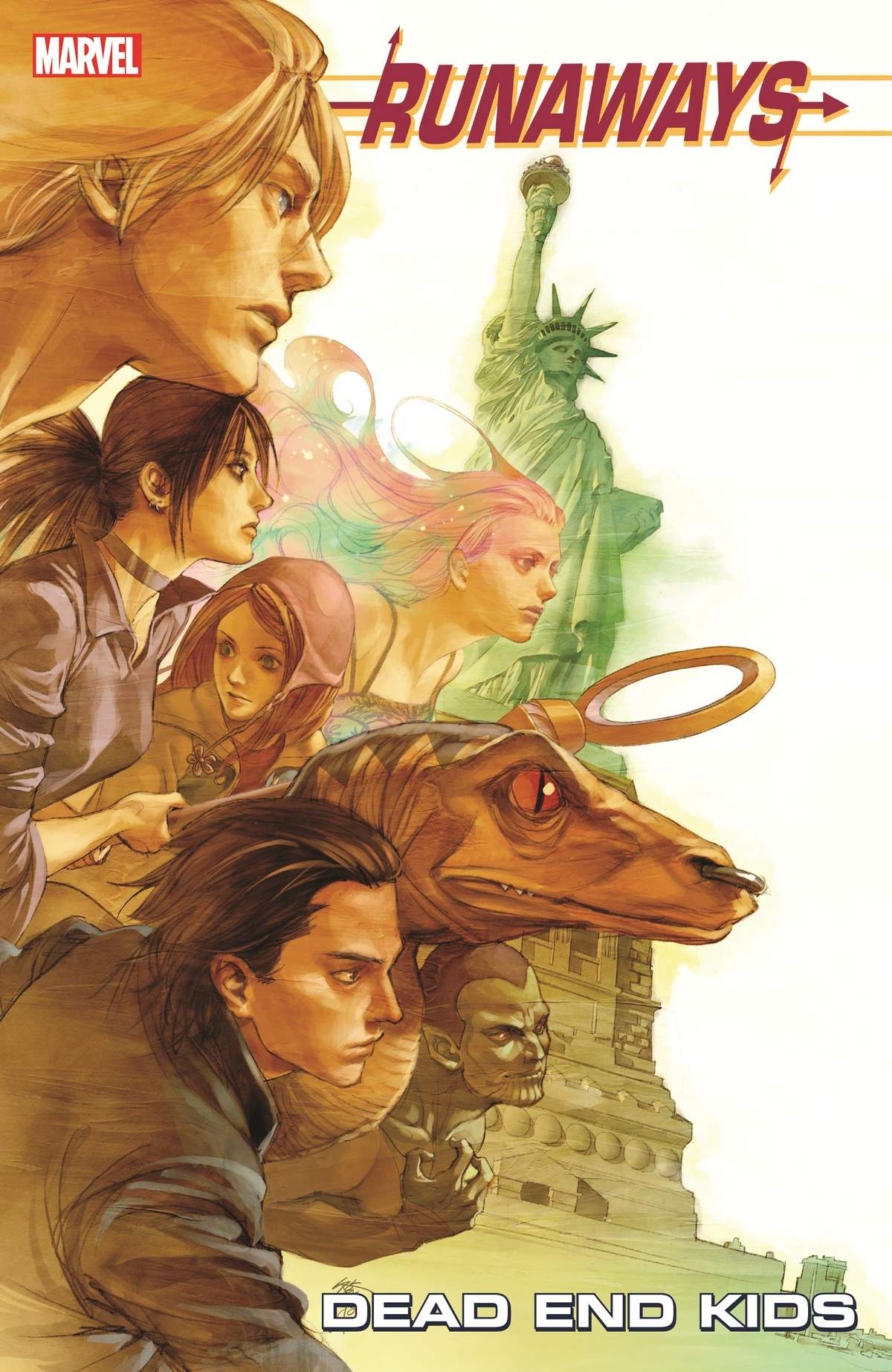 The kids start running in a different direction, courtesy of superstar writer Joss Whedon! Rebellious teens Nico, Chase, Karolina, Molly, Victor and Xavin are survivors. All children of super villains, they turned against their evil elders to become amateur super heroes. But when the authorities chase them out of Los Angeles, the Runaways forge an uneasy alliance with East Coast crime boss Kingpin, placing them on a collision course with the killer vigilante Punisher. The ensuing disaster hurls the kids a century backward in time, trapping them in 1907 New York — home of child labor, quaint technology and competing gangs of super-folk known as “Wonders.” Can the Runaways escape a super-powered war on the streets of New York and get back to the future? Find out in a timeless tale of comedy, romance and old-fashioned heroism! Collecting RUNAWAYS (2005) #25-30.