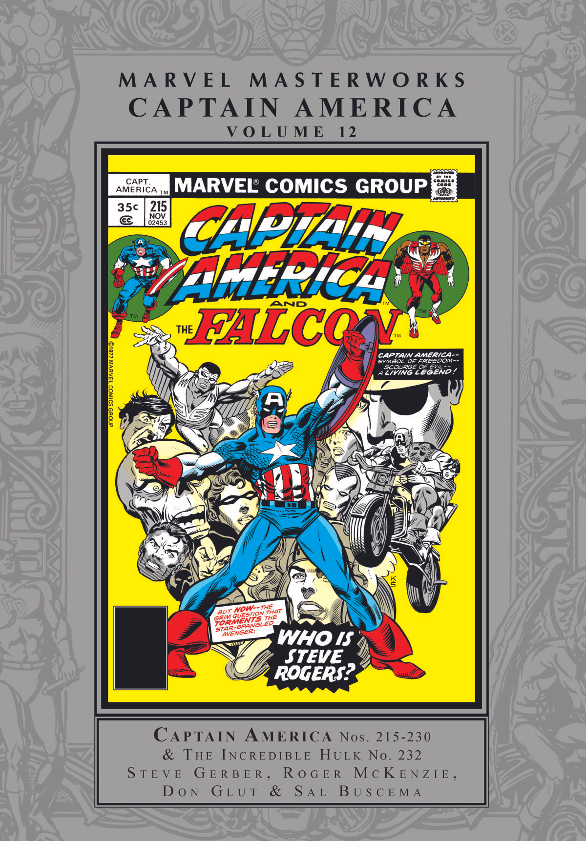 Collects Captain America (1968) #215-230 and Incredible Hulk (1968) #232. We voted - and this red-white-and-blue Masterworks, packed with rare Captain America adventures, wins in a landslide! After an awe-inspiring origin retelling by comics legend Roy Thomas, Cap comes face-to-face with a twisted twelve-foot version of himself: Behold the Ameridroid! And if that wasn't unusual enough, wait until you see Cap squaring off against...the Lincoln Memorial?! It's a good thing Cap's got Nick Fury and the Super Agents of S.H.I.E.L.D. on his side - because the Red Skull is back, and he's out for blood! And don't miss a showdown with the Hulk that pits the green-skinned Goliath's brute strength against nothing but Cap's trusty shield and battle-hardened tactical skill! It's a can't-miss Marvel classic!