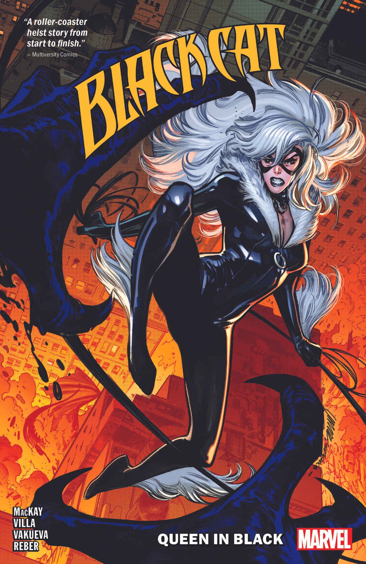 Collects Black Cat (2020) #1-4, material from X-Men: To Serve and Protect (2011) #4. Felicia Hardy is back for a classic game of cat and…symbiote? Knull’s attack on Earth interrupts the Black Cat’s latest heist, and if you know Felicia, you know that’s a problem. So the Black Cat and her crew aim to steal something of great value — both to Knull and to Earth’s hope of survival! But Felicia never shows up inappropriately dressed — and you won’t believe it when the Black Cat gets her own Anti-Venom costume! As Felicia adds to her bag of tricks, some of her upgrades may last beyond Knull’s invasion — and could come in handy in a feline fracas with…Queen Cat? Plus: the Black Fox has been sending Felicia and her crew to steal items from all corners of the Marvel Universe — but why? Prepare to find out at last!