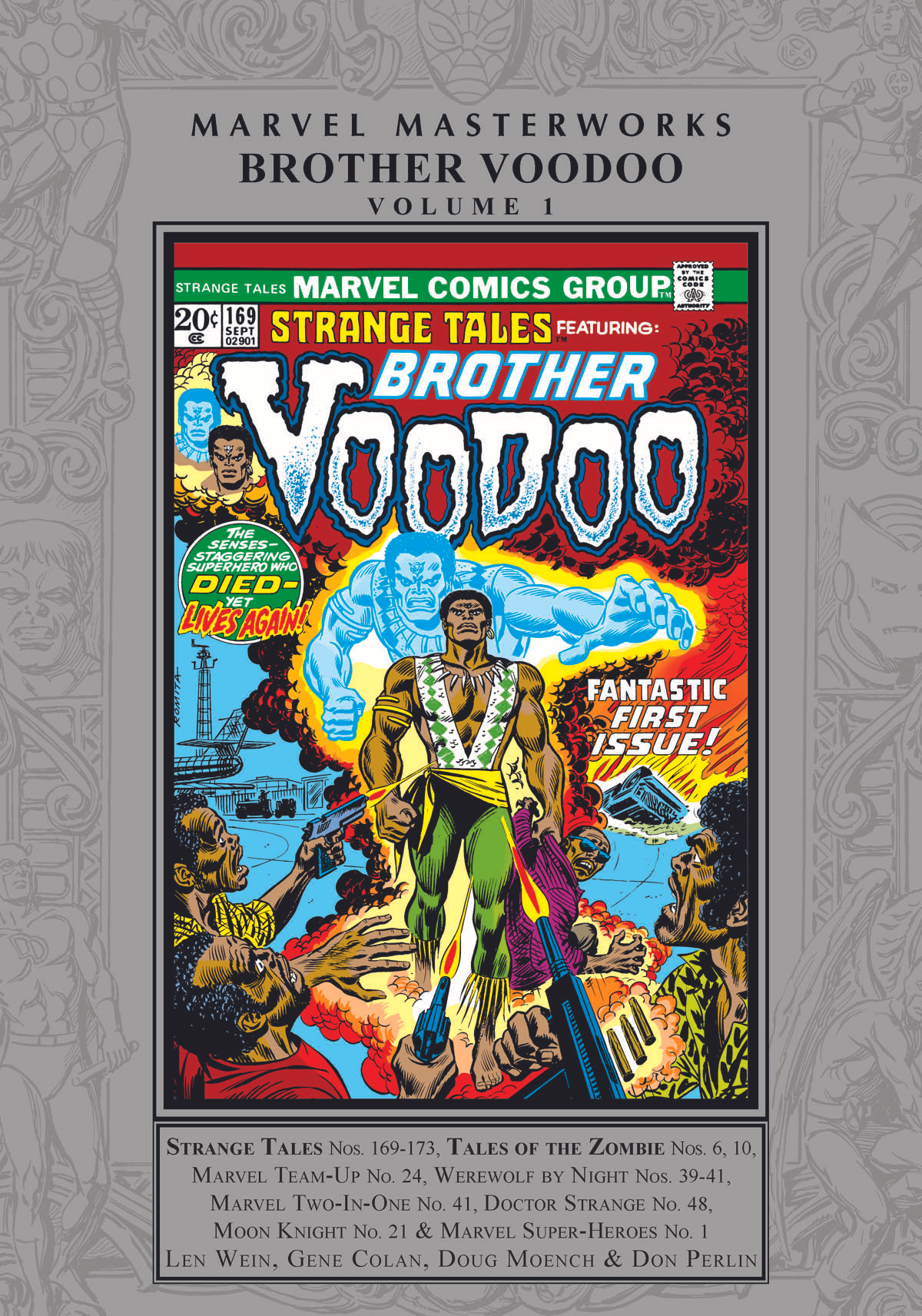 Collects Strange Tales (1951) #169-173; Marvel Team-Up (1972) #24, Werewolf by Night (1972) #39-41, Marvel Two-In-One (1974) #41, Doctor Strange (1974) #41, Moon Knight (1980) #21; material from Tales of the Zombie (1973) #6, 10, Tomb of Dracula (1972) #34-37, Werewolf by Night (1972) #38, Marvel Super-Heroes (1990) #1, Doctor Strange (1988) #16-17, 20. In 1973, Marvel's iconic series Strange Tales was reborn starring an extraordinary new horror hero. Today, the Marvel Masterworks are bringing the zombie hunting adventures of that hero-Brother Voodoo-back to life! Haitian-born, Jericho Drumm left his island nation to study psychology in America. When his brother is on his death bed, he returns home and this man of science becomes entangled in the spiritual world of voodoo! Jericho's brother's spirit is joined with his own, making him the new Brother Voodoo and a powerful protector of mankind. His exploits pit him against zombies and A.I.M. and team him with Moon Knight and Doctor Strange. The classic tales of Brother Brother are beautifully restored and collected in complete in this single volume.