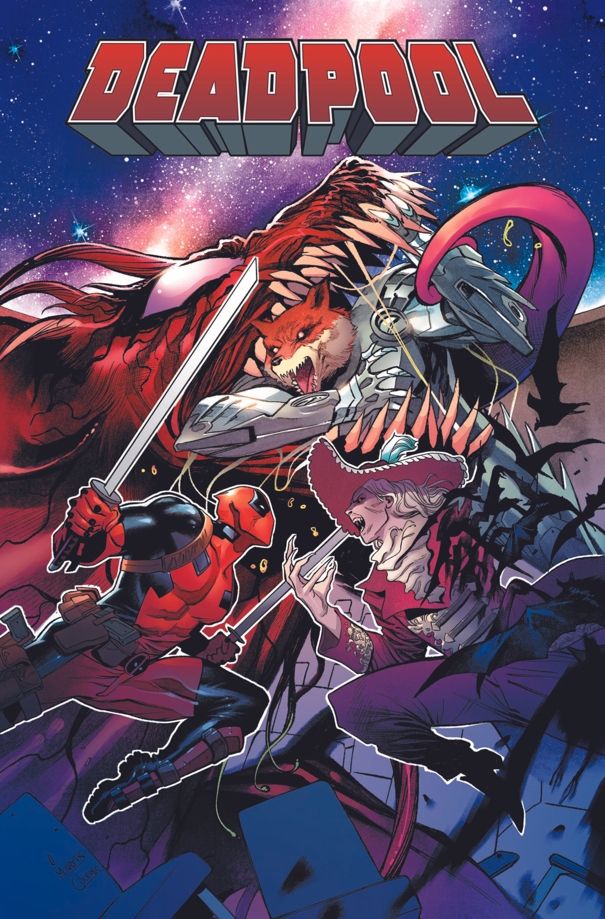 Collects Deadpool (2022) #6-10. Love is in the air as Deadpool takes his new romance, Valentine Vuong, out on the town! Unfortunately, bullets, blades and explosive devices are also in the air - since both of them have enemies who want them dead! What do trained killers do when trained killers try to kill them? Naturally, they try to kill those trained killers first! After all of this, Wade Wilson will need a break. All he wants to do is retire, have a nice time with his daughter and be completely cured of his cancer - is that too much to ask? Maybe not? But when he's captured by the mysterious Horned Emperor, can even Deadpool's new paramour - or his giant symbiote dog - save the Merc with a Mouth? Or is he heading for heartbreak?!