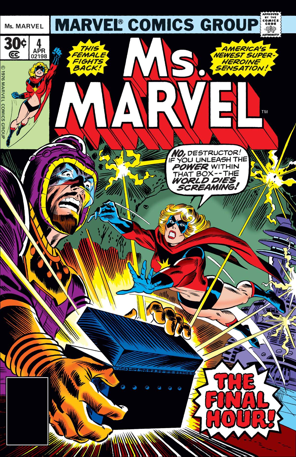 Grudge match in the cavern! While searching for answers about her discovery that she is Ms. Marvel, Carol is ambushed by Doomsday Man and the now Kree weapon-equipped Destructor! Can Carol survive a battle where she is both outnumbered AND outgunned?