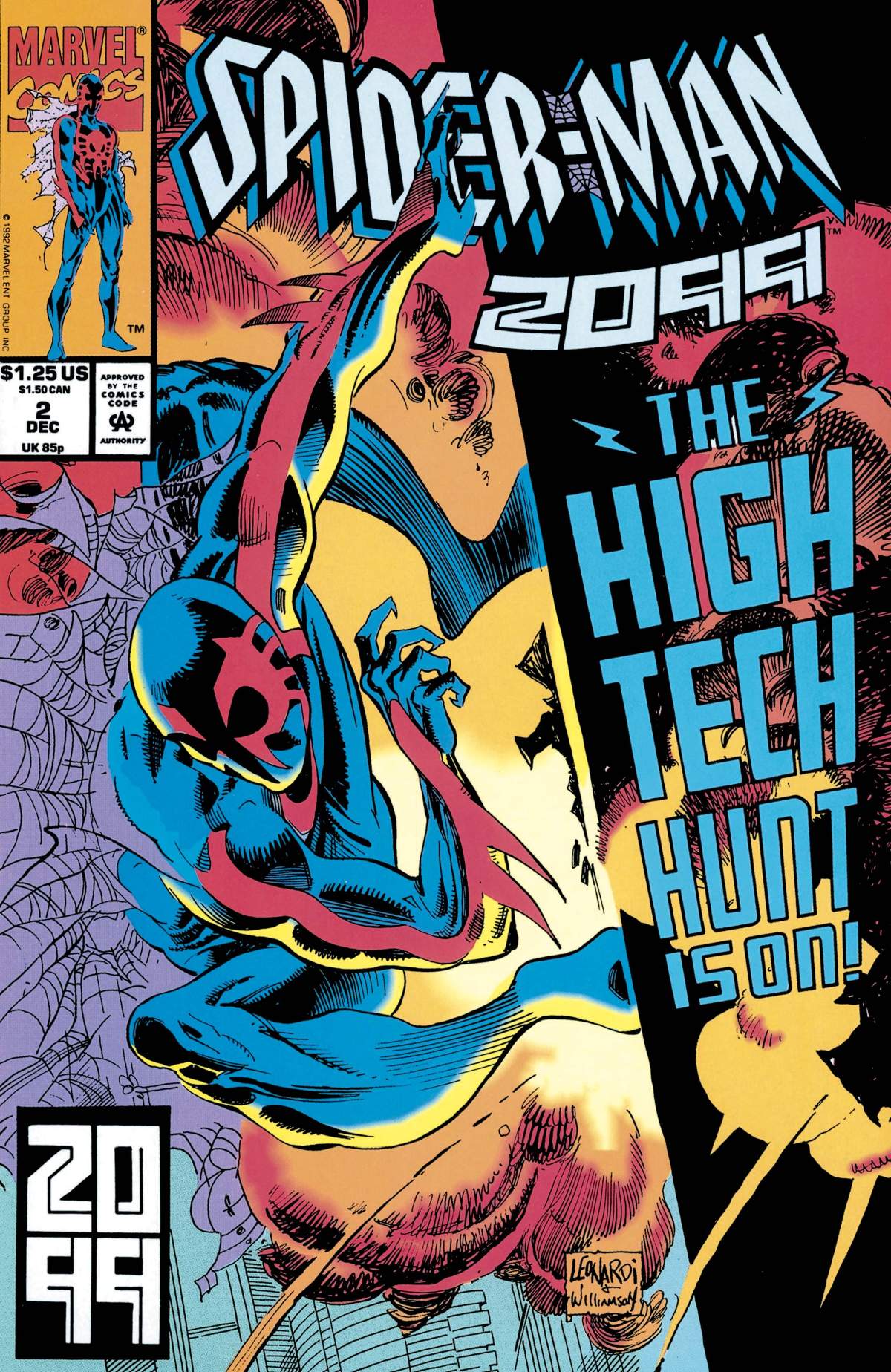 What is the history of Miguel O' Hara, the new Spider-Man of 2099? Discover his backstory in this shocking issue! Plus, a rude interruption from agents of the future, the Public Eye squad!