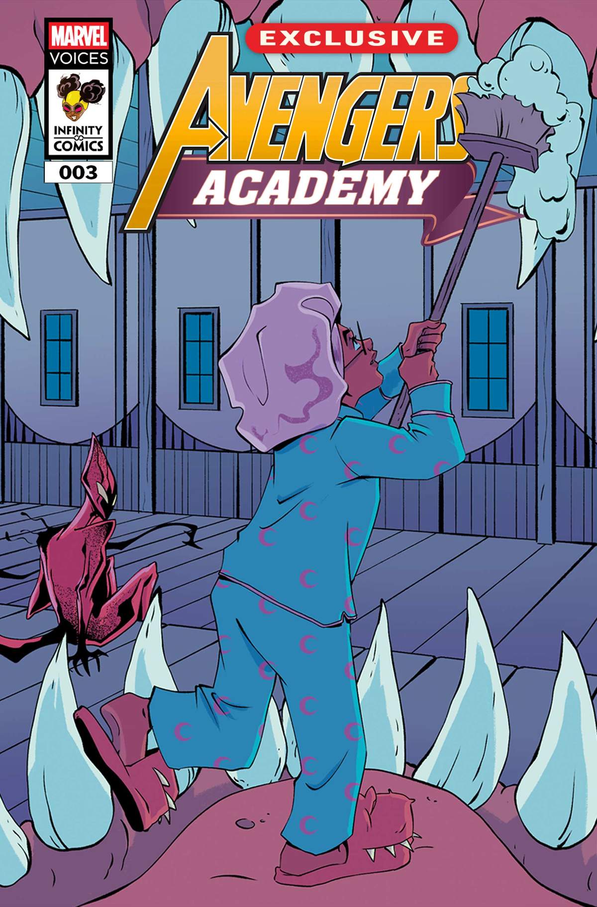 First night at the Academy and no one can sleep! But the heroes aren’t the only ones walking these dark corridors. Romance and danger alike bloom in the shadows, gorgeously illustrated by guest artist Bailie Rosenlund!