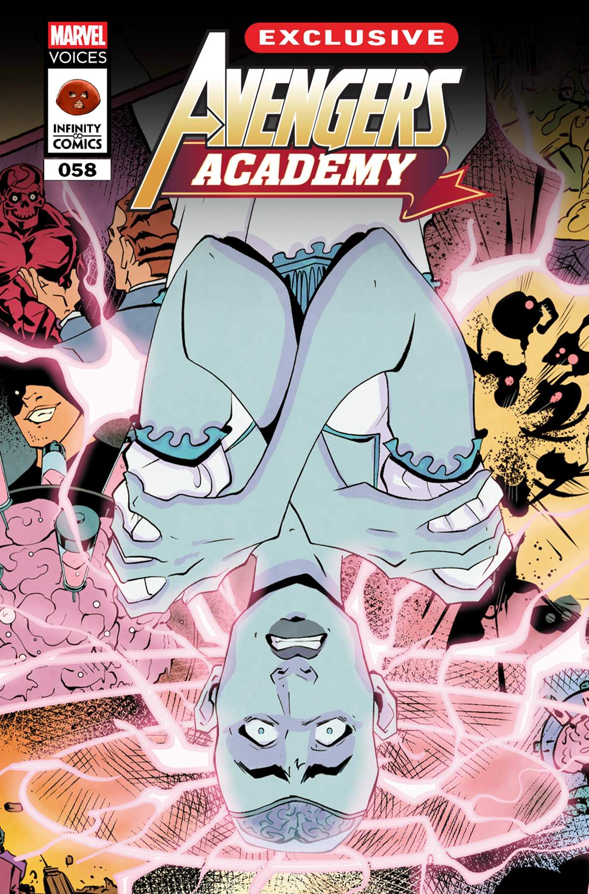 The Avengers Academy celebrates the start of fall term with an OPEN HOUSE GARDEN PARTY for friends and family. But when Escapade's guest, CEREBELLA, starts absorbing the thoughts of everyone around her, will buried secrets come to light?