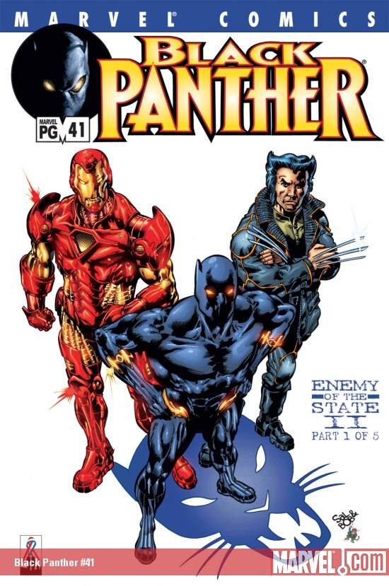ENEMY OF THE STATE II PART 1 Wolverine and Iron Man guest-star as a gripping new story-arc begins! A powerful record company executive is found murdered in his car, sending shockwaves across the dark underground of the international intelligence community! Alliances will be exposed, governments toppled, and a secret war ignited, drawing T'Challa into the fire! Meanwhile, an old threat reemerges as the other Black Panther rallies the Collectors, Mr. Little and Princess Zanda, for a new showdown with an ancient evil: King Solomon's Frog! Iron Man and Wolverine will drop by, and anyone who hasn't yet tried this acclaimed title should too!