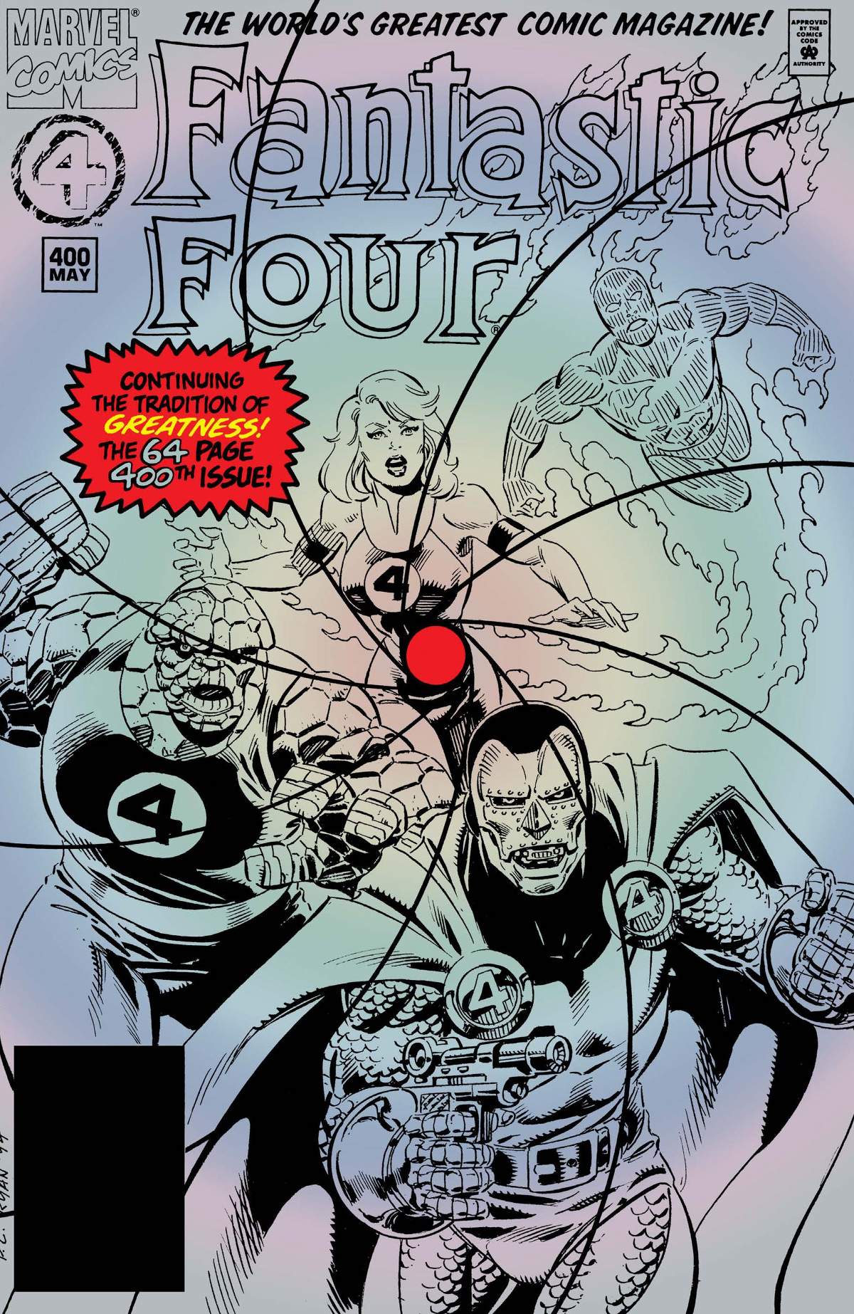 A special 64-page anniversary issue! Aron the Rogue Watcher plucks villains from across the timestream to destroy the FF once and for all! But Aron himself must contend with one that is his equal - Uatu, Earth's true Watcher! Then, when the dust has settled, the Fantastic Four at last pay final respects to their dear friend and leader, Reed Richards.