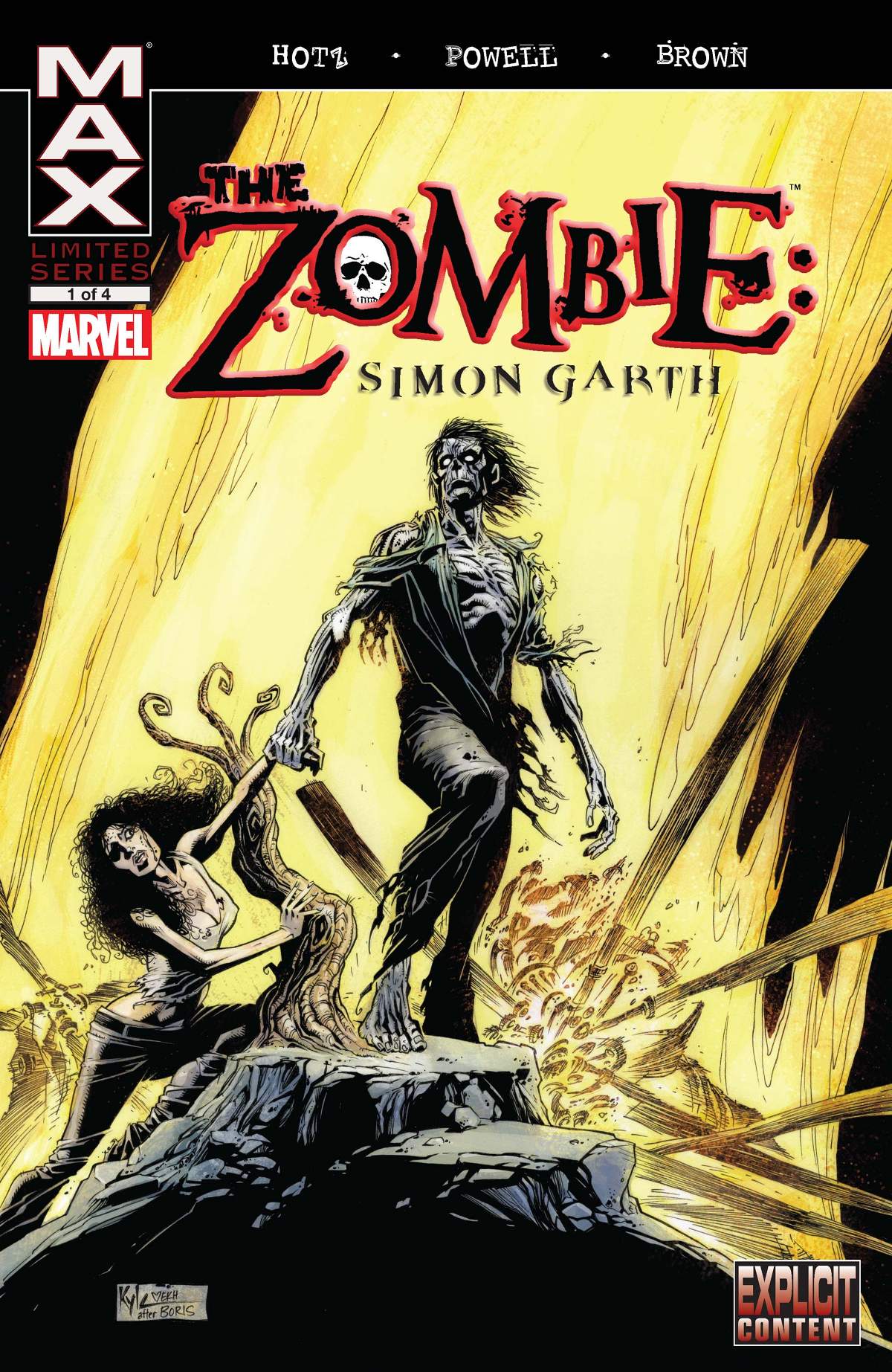 Find out how Simon got out of THAT one --- assuming he did ---- and check out his further adventures battling the undead ---unless, that is, he's one of them now --- in a brutal, gory, disgusting...awesome re-imagining of one of Marvel's strangest horror heroes, that could only be dreamed up by artist/co-writer Kyle Hotz (ZOMBIE) and Eric Powell (The Goon)!