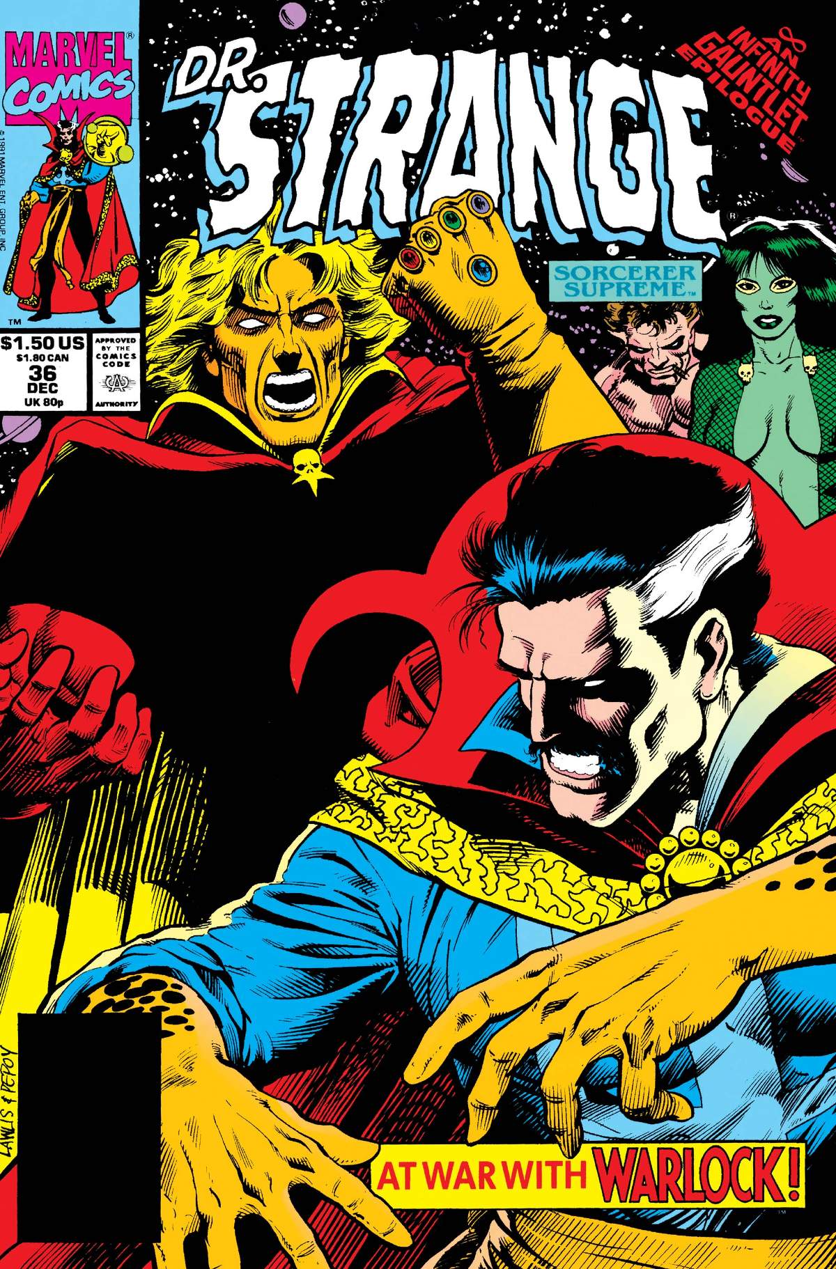 Adam Warlock now wears the Infinity Gauntlet and its power is almost too much for him. Doctor Strange gets to use each of his old standby artifacts to counteract the Gauntlet's effects.