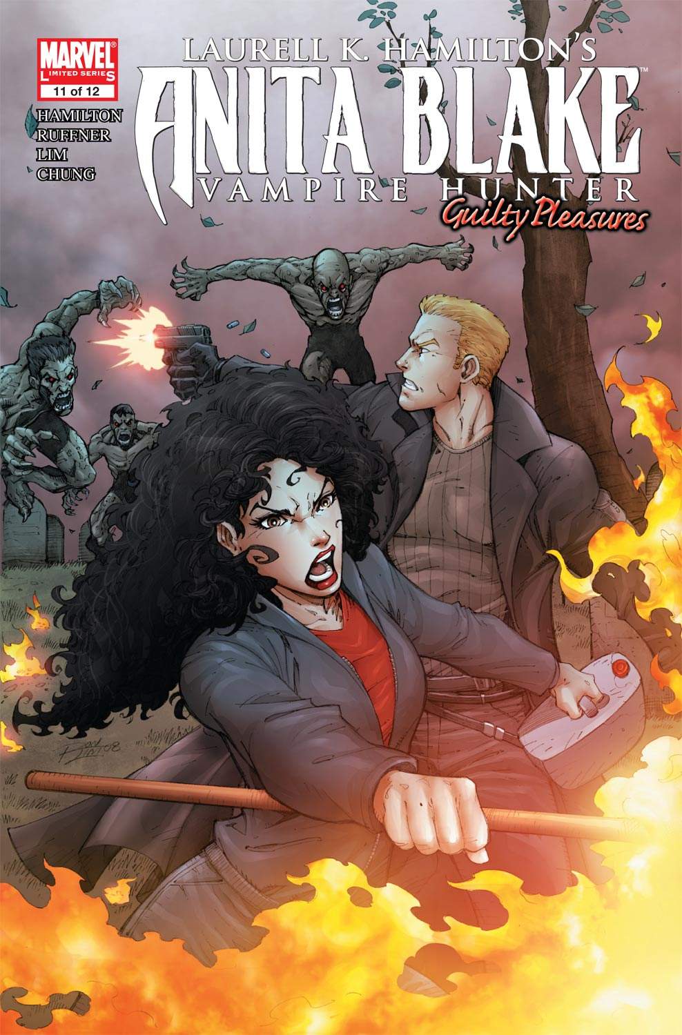 Things really heat up this month for Laurell K. Hamilton's Anita Blake as she deals with last issue's revelation. Now that she knows who's behind the recent spate of illegal vampire slayings, she just has to keep from getting torn apart by an army of ghouls! Caught between the deadly vampires she's paid to kill, the vicious murderer whose been brutalizing them, and a psychopathic vigilante, you'll never believe where things will lead in this pulse-pounding issue adapting the best-selling novel "Guilty Pleasures."
