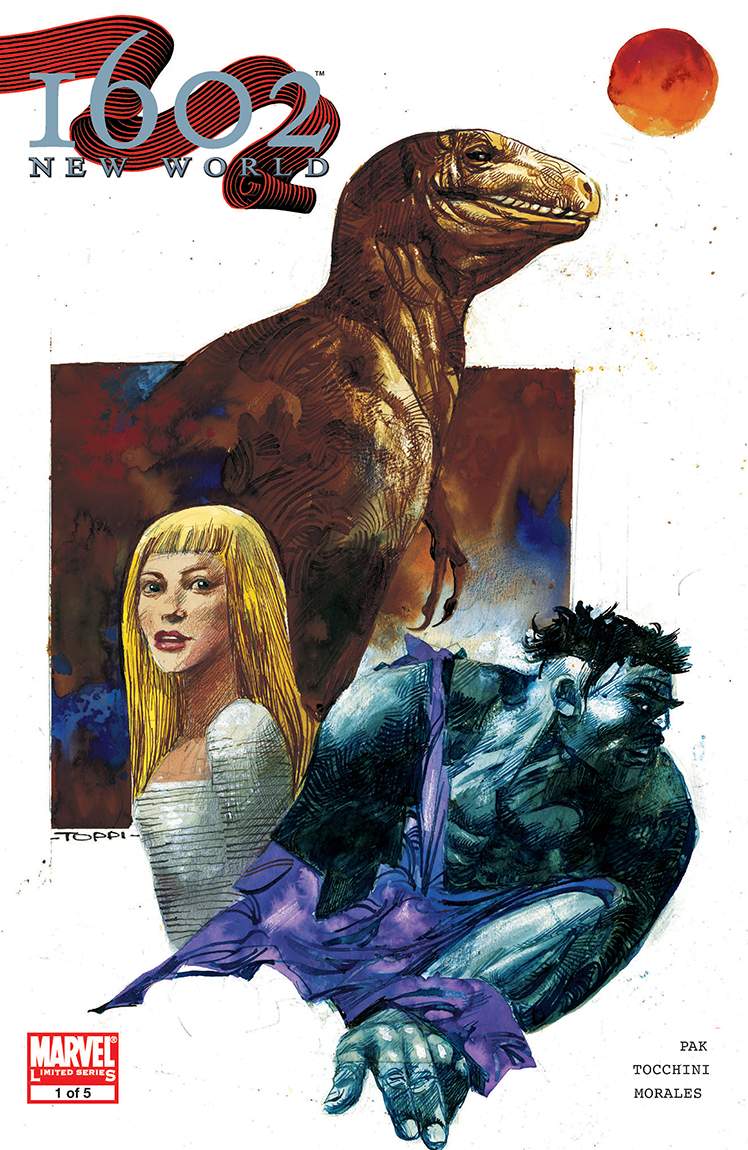 Return to the world of 1602! Rising stars GREG PAK (X-Men: Phoenix Endsong) and GREG TOCCHINI (Thor: Son of Asgard) pick up where the best-selling limited series left off-America, The New World! When Captain America was thrust back in time, it changed reality as we know it. Dinosaurs still roam the earth and the Marvel super heroes we know came to exist 500 years early. Witness David Bruce Banner and Peter Parquagh become The Hulk and Spider-Man in the most eagerly-awaited miniseries event of the year!