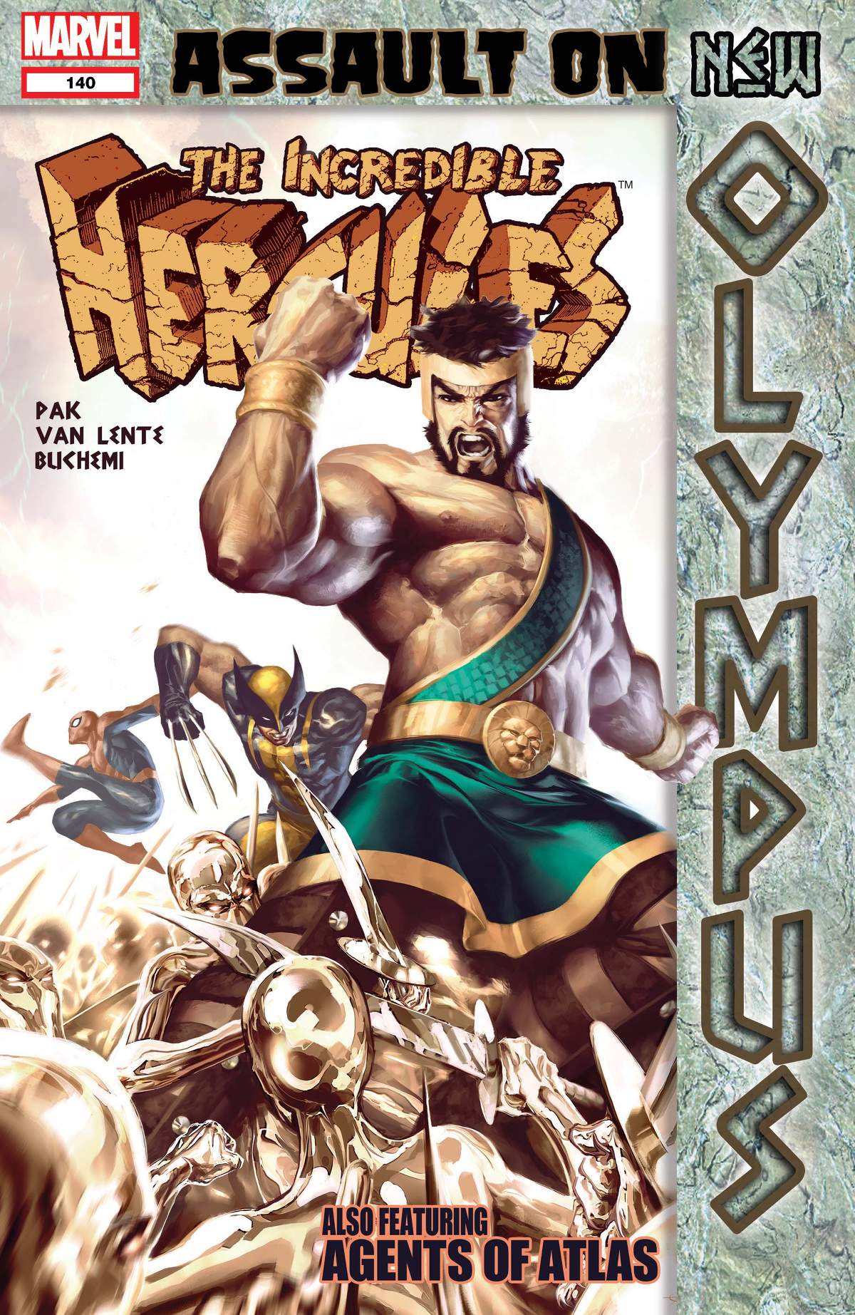 Of all the giants, gods and monsters Hercules and his team of New and Mighty Avengers have faced in their battle through New Olympus, none may be as formidable as HEPHAESTUS, creator of the immortals' fearsome war engines! With what fearsome device will he try to ensnare and destroy the Hercules/Amadeus Cho team, which has reformed at last -- only to meet their doom? Find out as the New York Times Best-Selling creative team lead Herc on his biggest adventure yet! Plus: as the Agents of Atlas push into the stronghold of the Olympus group, Aphrodite decides to take matters into her own hands in Godmarked Part 3!