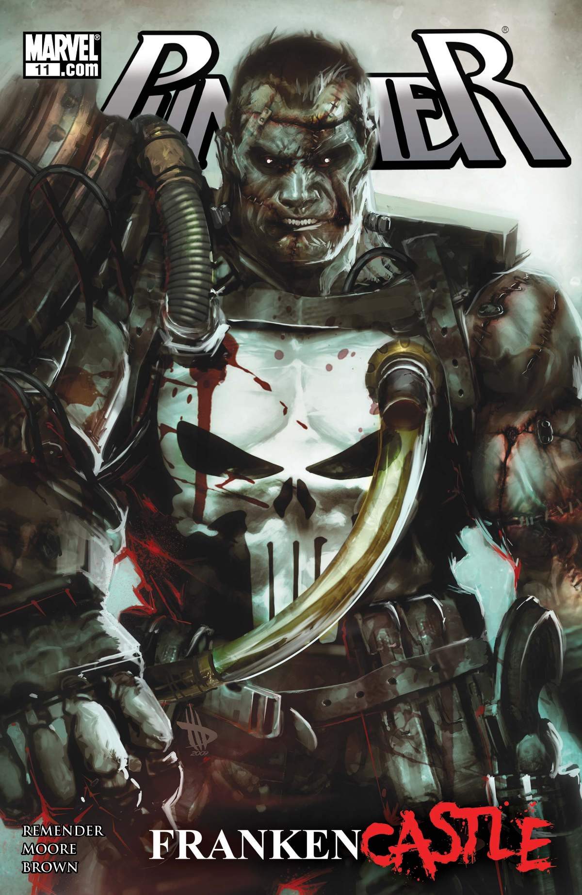 In the belly of New York, skulking and forgotten creatures of the night uncover the remains of a man in a familiar outfit. Frank Castle is dead. What exactly IS Frankencastle? Long time collaborators Rick Remender and Tony Moore (GHOST RIDER, Fear Agent, The Walking Dead) are reunited for what will be the greatest struggle in the afterlife of the Punisher. Battle not with monsters, lest ye become a monster...