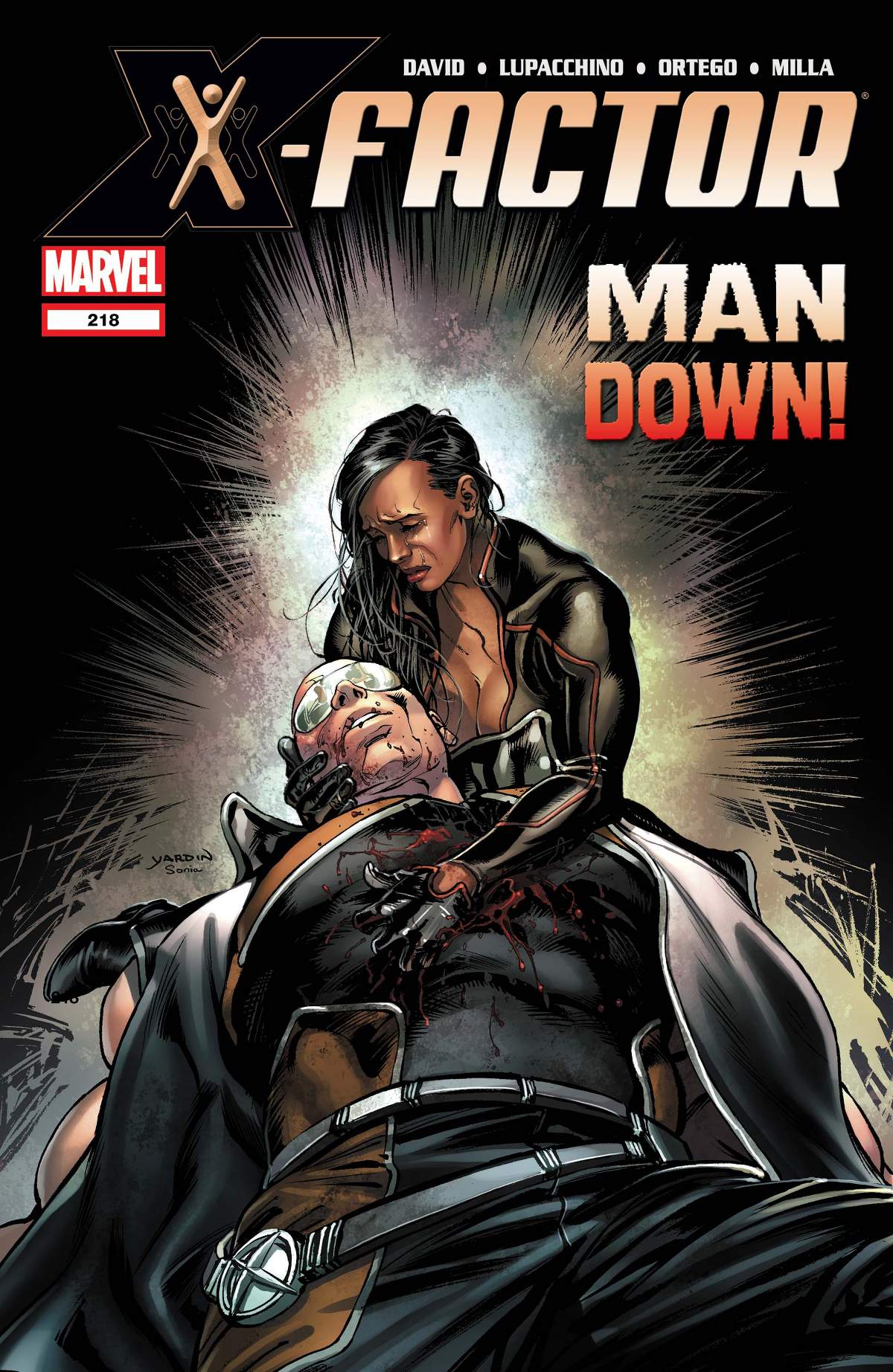 If you have tears, prepare to share them now. Â For, as X-Factor and the Black Cat battles the S.C.A.R. in a desperate attempt to save J. Jonah Jameson--yes, THAT J. Jonah Jameson--one of our heroes lies dying, and survival isn't looking too likely.