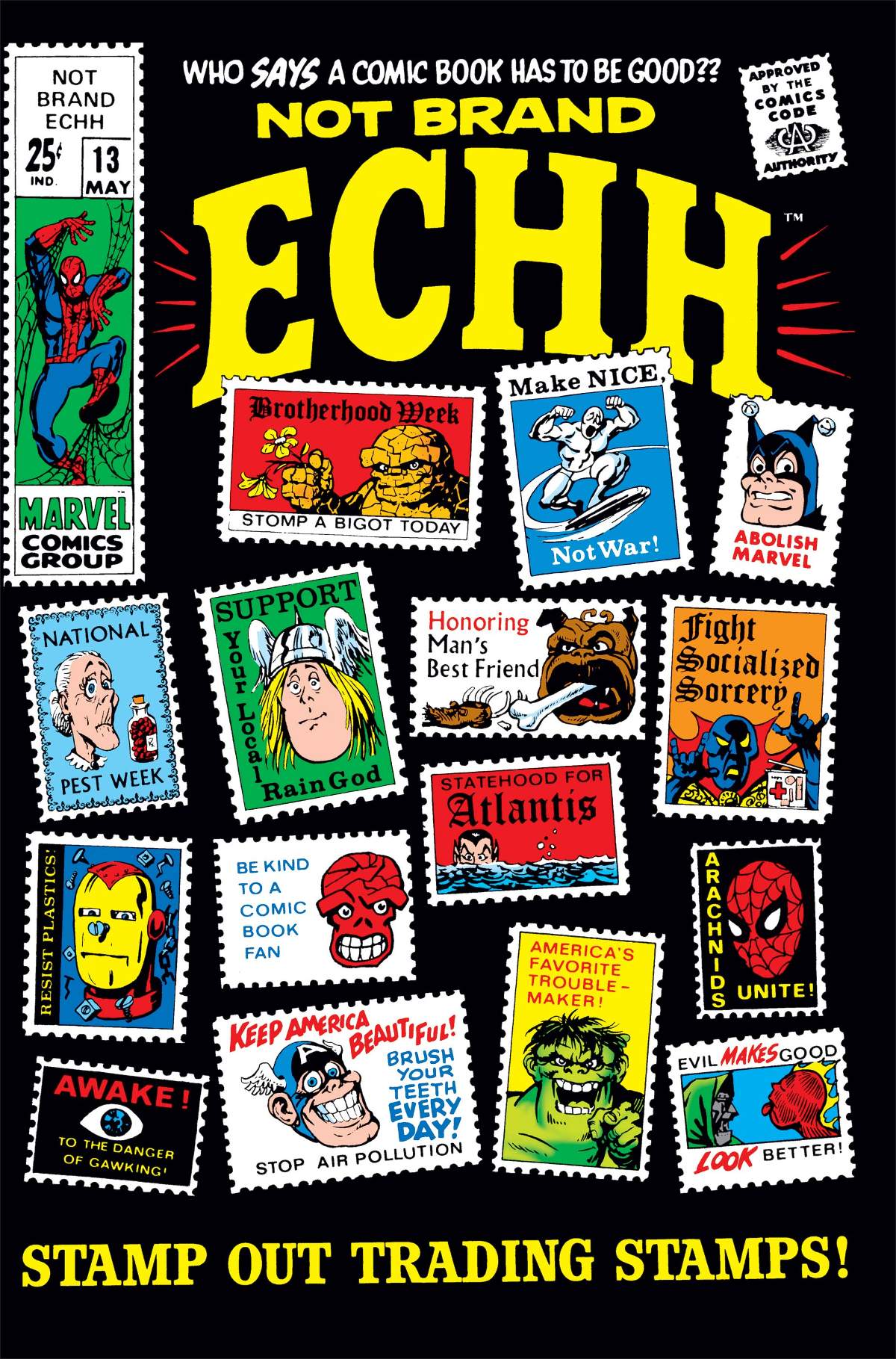 The first appearance of Forbush Man! Four spoofy stories in one bust-out-loud-laughing issue! Here, meet the mighty Silver Burper! Then, you’ve read the fateful meeting between original Young Allies Human Torch and the Sub-Mariner, but have you met…The Human Scorch and Sunk-Mariner?!