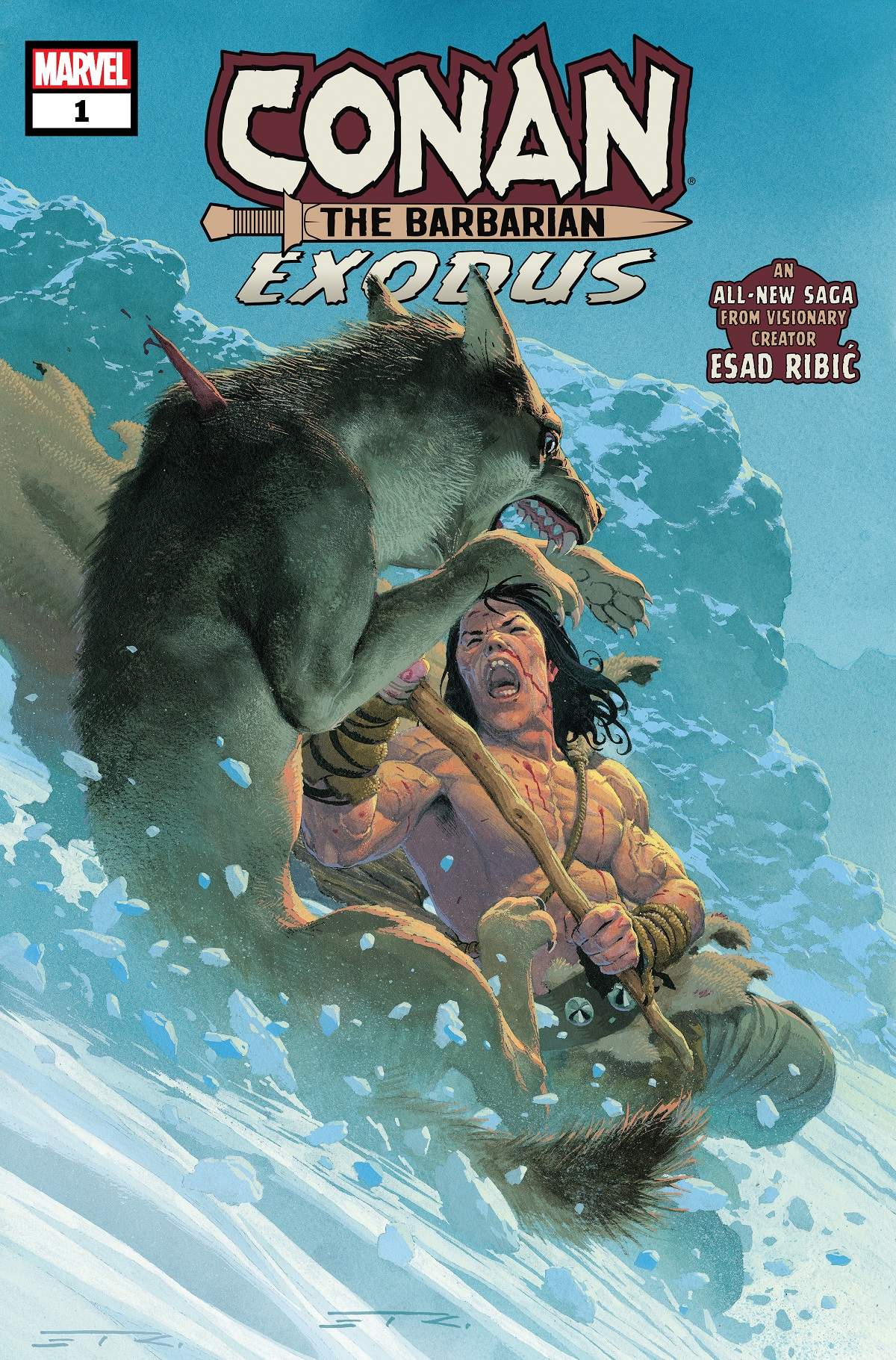 MAN VS. NATURE IN THE NEVER-BEFORE-TOLD STORY OF CONAN’S FIRST JOURNEY FROM CIMMERIA! Long have the stories told of CONAN, who came from the frozen hills of his homeland, Cimmeria, to tread the jeweled thrones of the Earth in the Hyborian Age – but now you will witness the epic tale of the young barbarian’s first journey from home from visionary creator Esad Ribic! Fifteen winters in Cimmeria have toughened the young Conan, but his greatest challenge lies ahead. Braving the elements, without food, without shelter, without weapons, Conan must learn to survive even as nature itself conspires to stop him. The snow freezes his bones. The wolves smell his blood. But if he can reach civilization, will his wounds heal…or will his troubles just begin? With a majestic scope underscored by the completely visual narrative, don’t miss this truly special moment in Conan’s story and an unprecedented issue in Marvel Comics publication history!