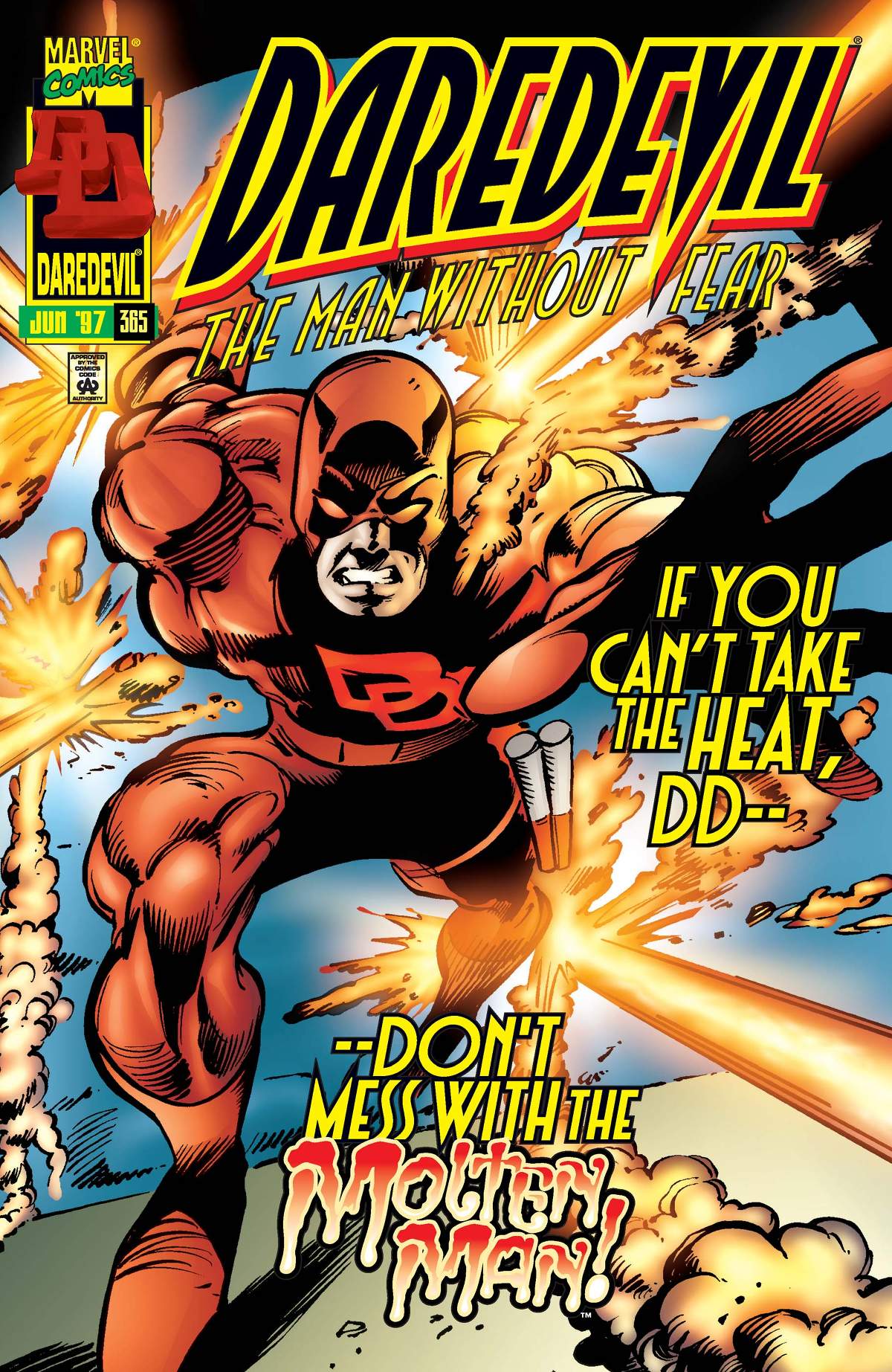 Molten Man’s in a boardroom preparing to take part in the family business. But Mr. Fear crashes the meeting unleashing a strange gas! Matt Murdock dons his Daredevil duds and tries to get Osborn Industries back in business.