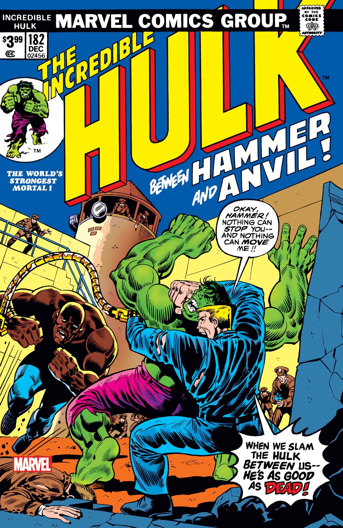 CONTINUING THE FIRST APPEARANCES OF WOLVERINE! Completing one of the most famous Hulk sagas of all! The INCREDIBLE HULK #180-181 FACSIMILE EDITIONS reintroduced you to Wolverine, who joined the Hulk in a three-way tussle against the monstrous Wendigo! Now find out what happens next as Wolvie’s bosses take matters into their own hands! But the puny humans only succeed in making the Hulk even angrier - and set him on a collision course with the super-powered escaped convicts known as Hammer and Anvil! Prepare for a surprisingly touching chapter in the Hulk’s endless wandering, as the jade giant makes a friend-and learns the meaning of loss. It’s one of the all-time great Marvel comic books, boldly re-presented in its original form, ads and all! Reprinting INCREDIBLE HULK (1968) #182.