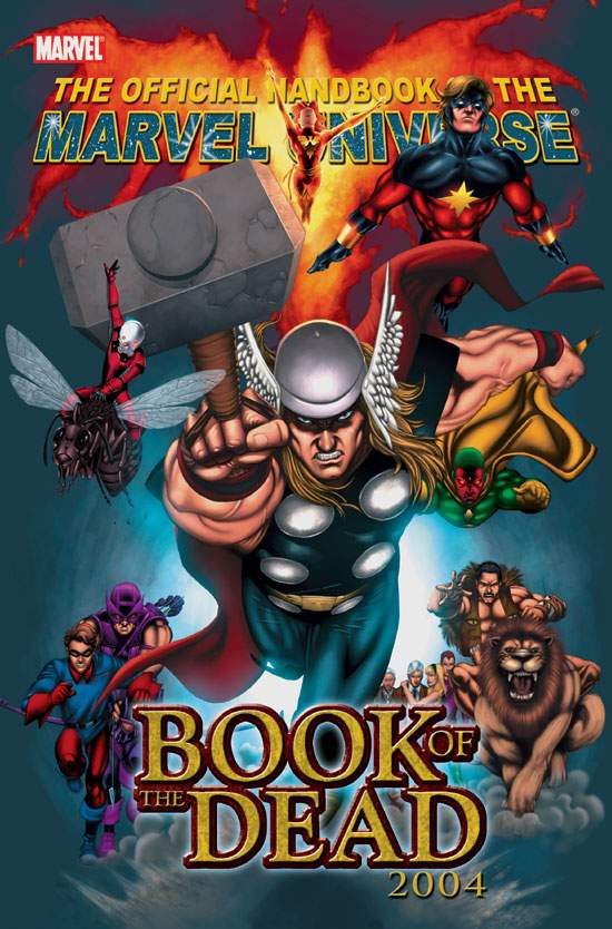The House of Ideas pays tribute to its fallen heroes! OHOTMUBOTD04 includes in-depth bios on more than 40 of Marvel's dearly departed - from ancient ones, old soldiers, kid sidekicks and Stacys to casualties of THE comic-book event of 2004: Avengers Disassembled! Plus: an all-new, digitally painted cover by superstar artist Salvador Larroca!