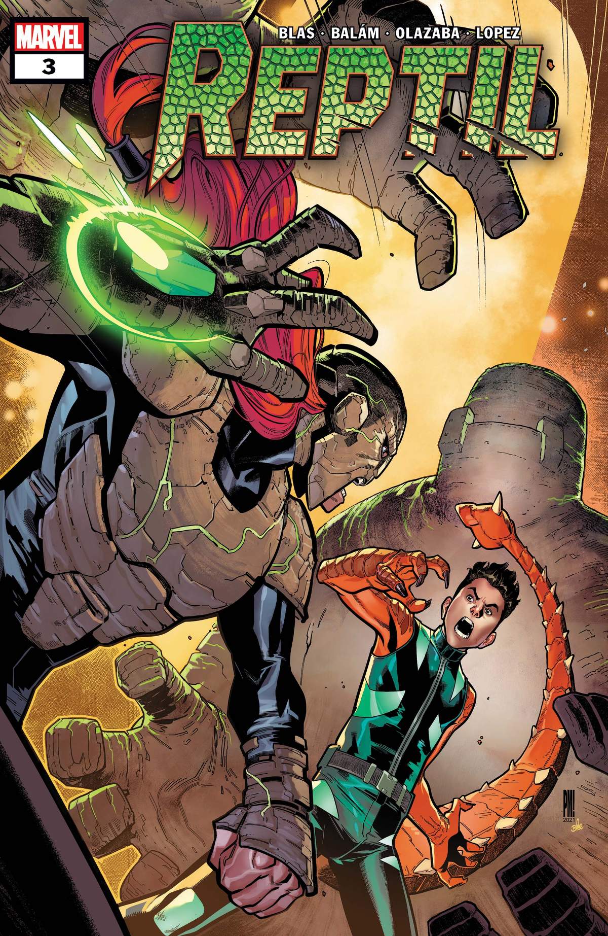 REPTIL’S WORLD TURNED UPSIDE DOWN! Tired of being hunted, Reptil goes on the offensive against Megalith! But when his infiltration mission goes south, Reptil soon finds himself fighting for his life… Plus: The secret of what really happened to Humberto’s parents is finally revealed! Can Humberto handle the truth, or is this the thing to finally break him?