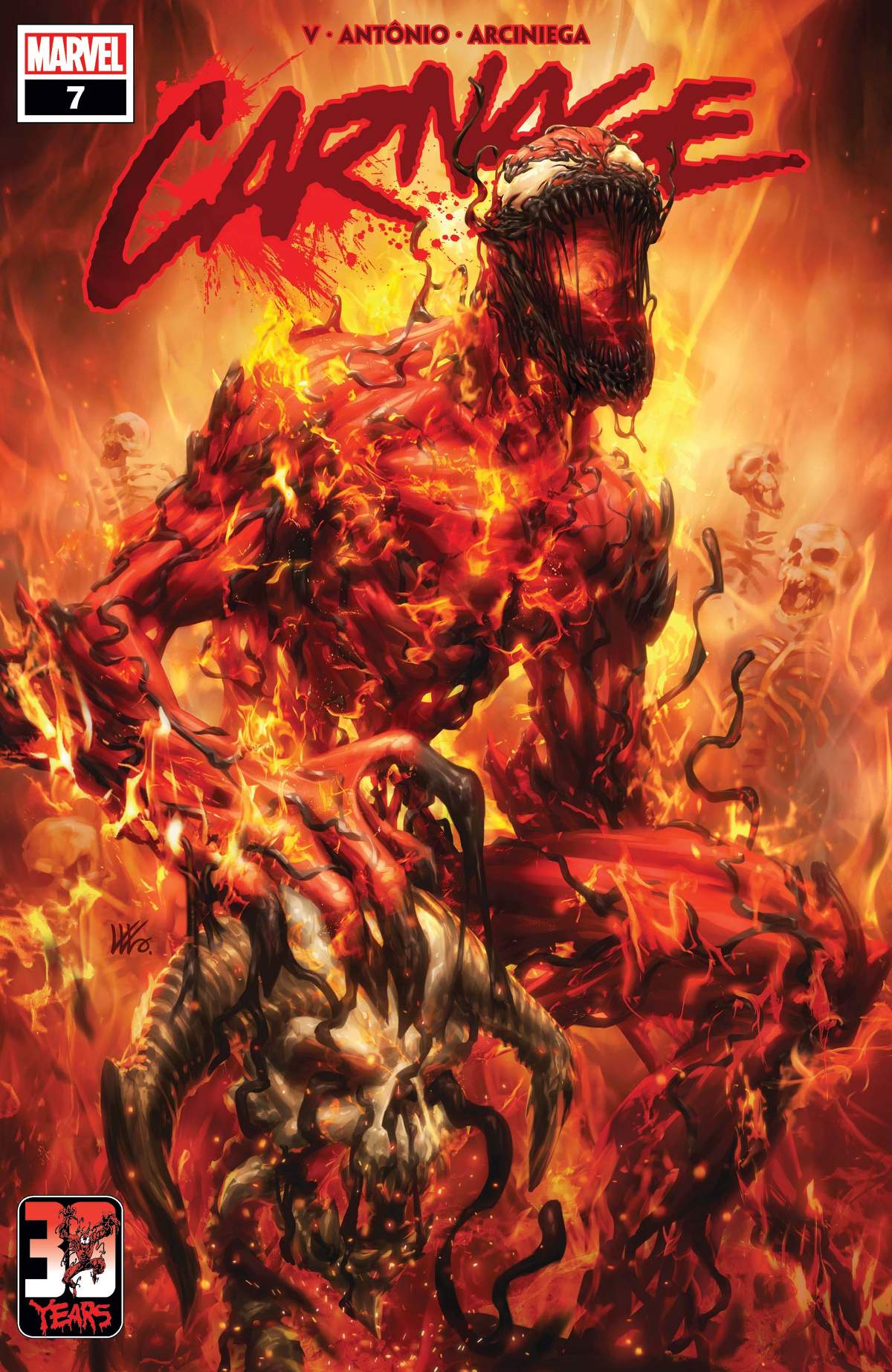 With violence and glory on its mind, the Carnage symbiote continues to carve a bloody path through the underworld with the singular goal of reaching Malekith the Accursed. But what does Carnage want with the disgraced lord of the Dark Elves, and what does it have to do with Venom and Eddie Brock?
