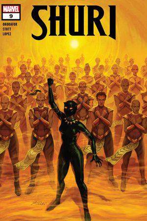 The Black Panther’s techno-genius sister stars in her own incredible adventures! T’Challa has disappeared, and Wakanda expects Shuri to lead their great nation in his absence! But she’s happiest in a lab surrounded by her inventions. She’d rather be testing gauntlets than throwing them down! So it’s time for Shuri to rescue her brother yet again — with a little help from Storm, Rocket Raccoon and Groot! But what happens when her outer-space adventure puts Africa at risk from an energy-sapping alien threat? Then, Shuri heads to America to investigate a lead, with Ms. Marvel and Miles “Spider-Man” Morales along for the ride! But with her people in peril, will Shuri embrace her reluctant destiny and become the Black Panther once more? Prepare for a hero like you’ve never seen before!